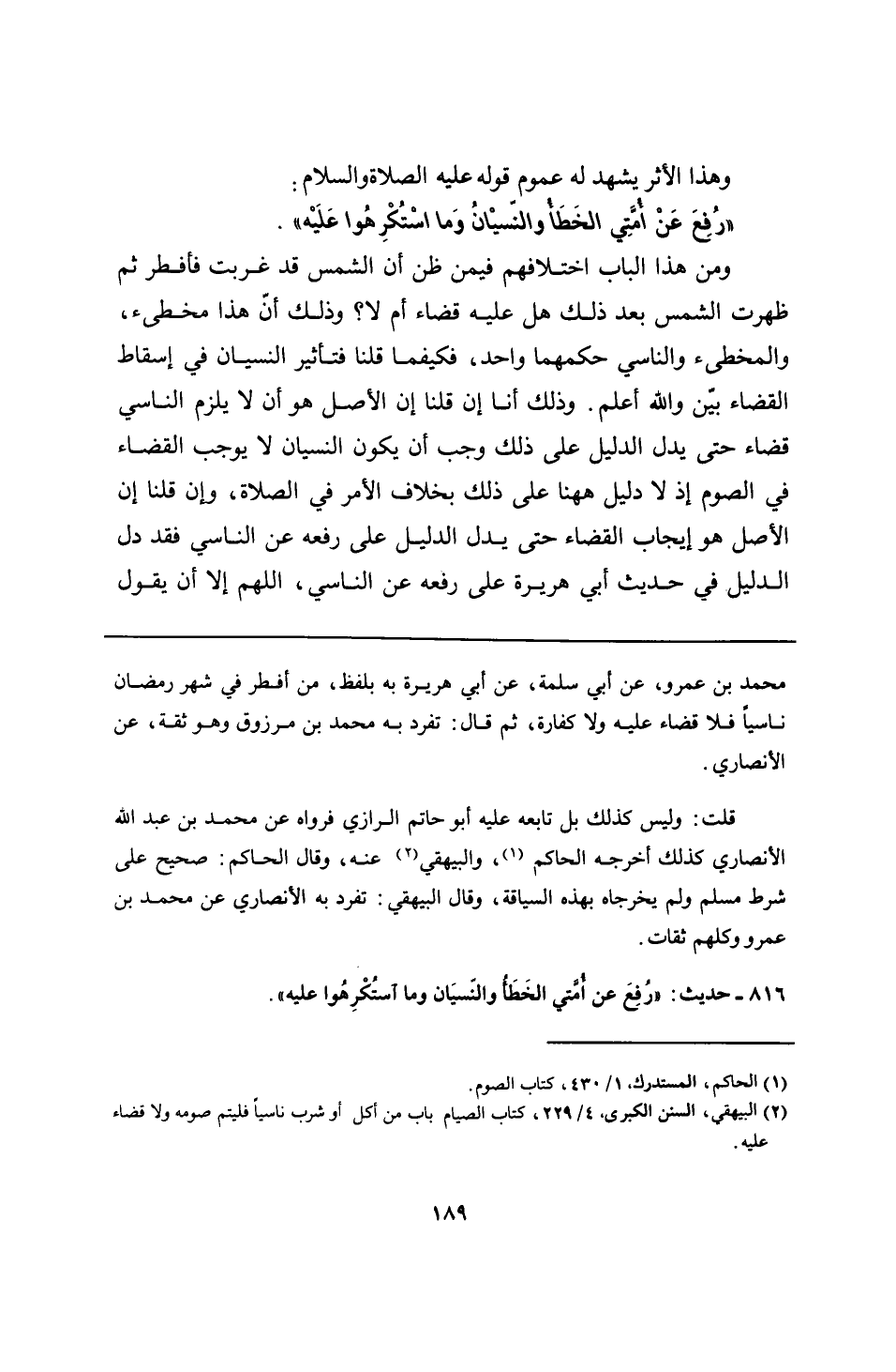 816 - حديث: "رُفِعَ عن أمتي الخَطَأ والنسيَان وما استكْرِهُوا عليه".
