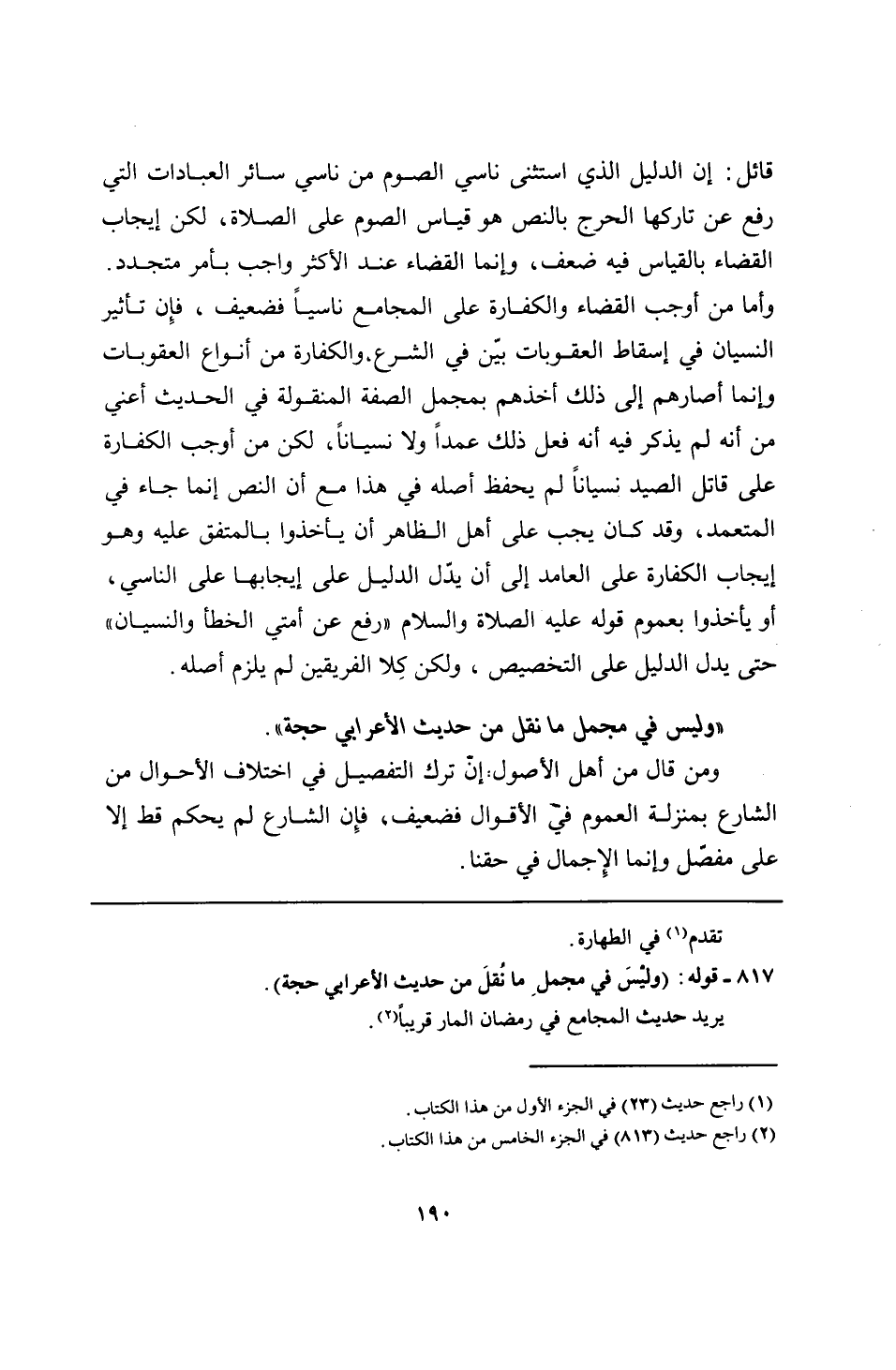 817 - قوله: (وليسَ في مجملِ ما نُقلَ من حديث الأعرابي حجة).