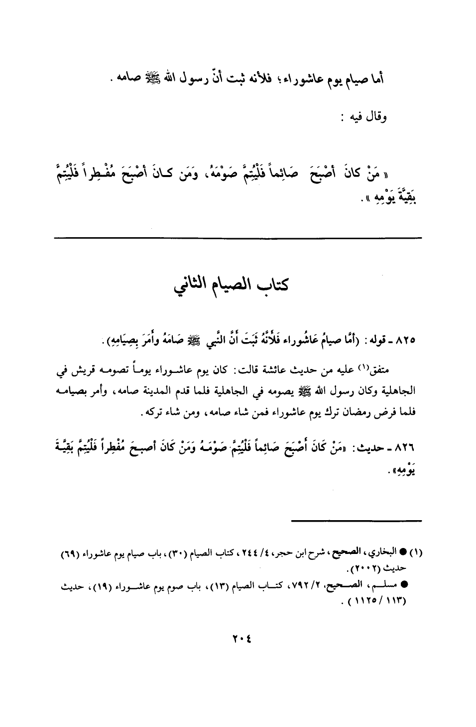 825 - قوله: (أمّا صيام عَاشُوراء فَلأنهُ ثَبَتَ أن النبي - صلى الله عليه وسلم - صَامَة وأمَرَ بِصِيَامِهِ).