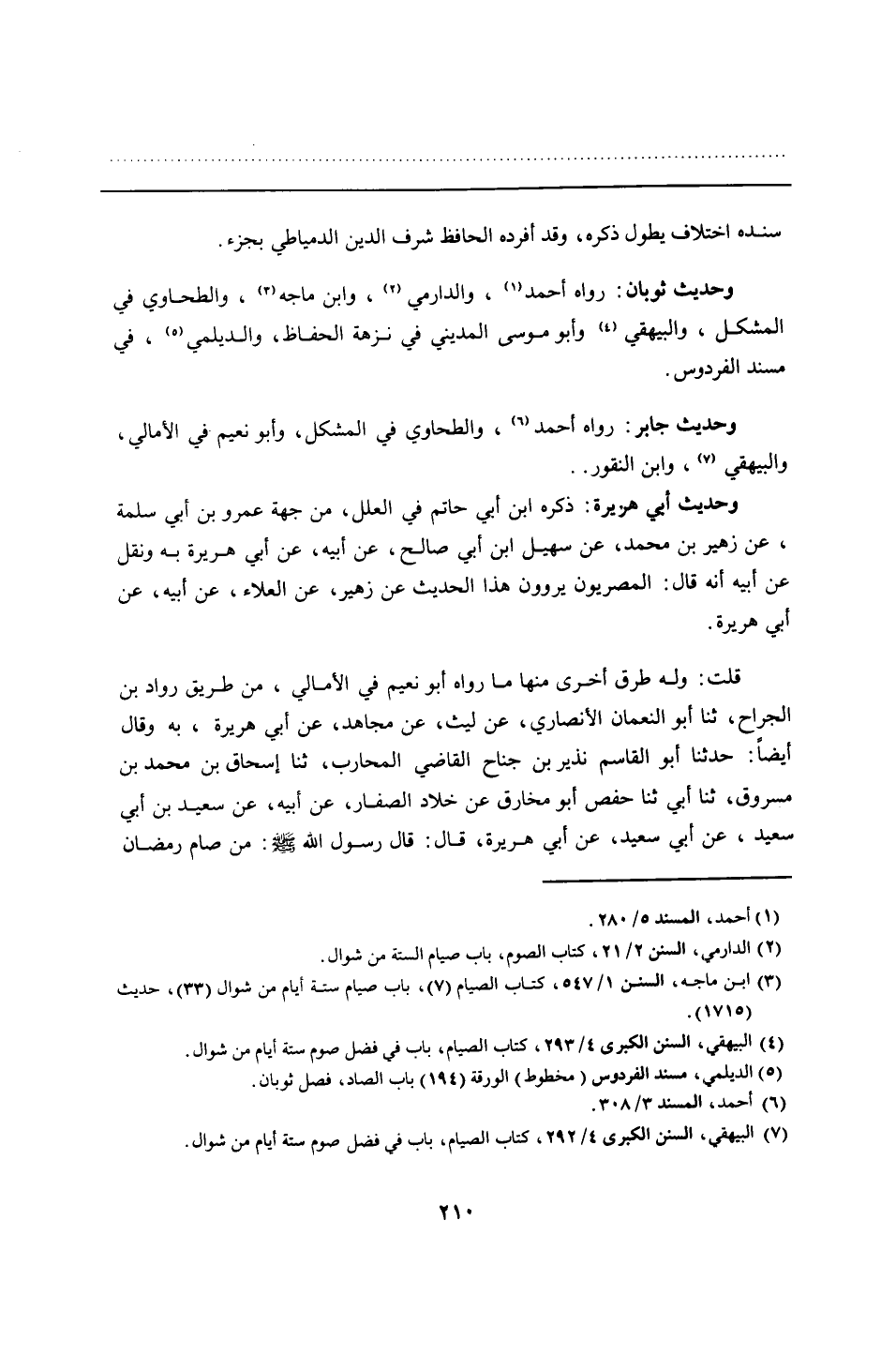 وحديث ثوبان: رواه أحمد، والدارمي، وابن ماجه، والطحاوي في المشكل، والبيهقي وأبو موسى المديني في نزهة الحفاظ، والديلمي، في مسند الفردوس.