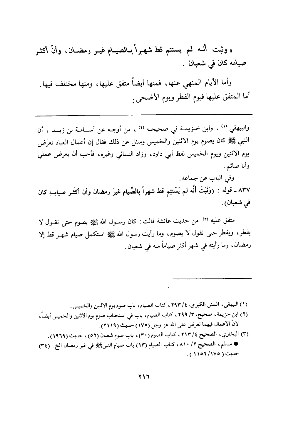 837 - قوله: (وَثَبَتَ أنه لم يَسْتتِم قط شهرًا بالصِّيام غيرَ رمضان وأن أكثَر صيامِهِ كان في شعبان).