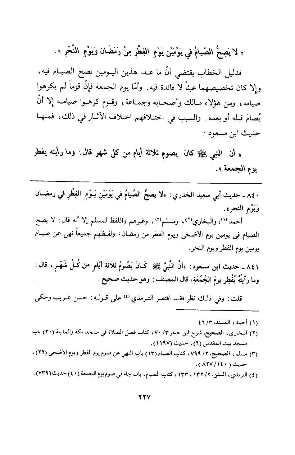 840 - حديث أبي سعيد الخدري: "لا يصحُّ الصيامُ في يَوْمَيْنِ يَوْمِ الفِطْرِ في رمضان ويَوْم النحر".