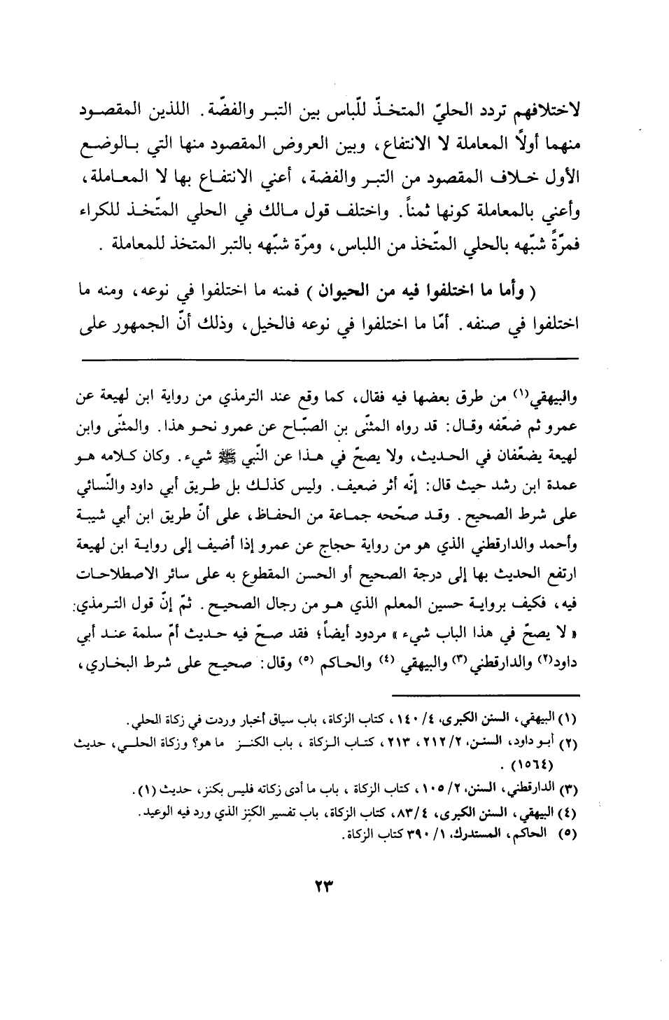 والبيهقي من طرق بعضها فيه فقال، كما وقع عند الترمذي من رواية ابن لهيعة عن عمرو ثم ضعّفه وقال: قد رواه المثنّى بين الصبّاح عن عمرو نحو هذا. والمثنّى وابن لهيعة يضعّفان في الحديث، ولا يصحّ في هذا عن النّبي - صلى الله عليه وسلم - شيء. وكان كلامه هو عمدة ابن رشد حيث قال: إنّه أثر ضعيف. وليس كذلك بل طريق أبي داود والنّسائي على شرط الصحيح. وقد صحّحه جماعة من الحفاظ، على أن طريق ابن أبي شيبة وأحمد والدارقطني الذي هو من رواية حجاج عن عمرو إذا أضيف إلى رواية ابن لهيعة ارتفع الحديث بها إلى درجة الصحيح أو الحسن المقطوع به على سائر الاصطلاحات فيه، فكيف برواية حسين المعلم الذي هو من رجال الصحيح. ثمّ إنّ قول الترمذي: "لا يصحّ في هذا الباب شيء" مردود أيضًا؛ فقد صحّ فيه حديث أمّ سلمة عند أبي داود والدارقطني والبيهقي والحاكم وقال: صحيح على شرط البخاري،