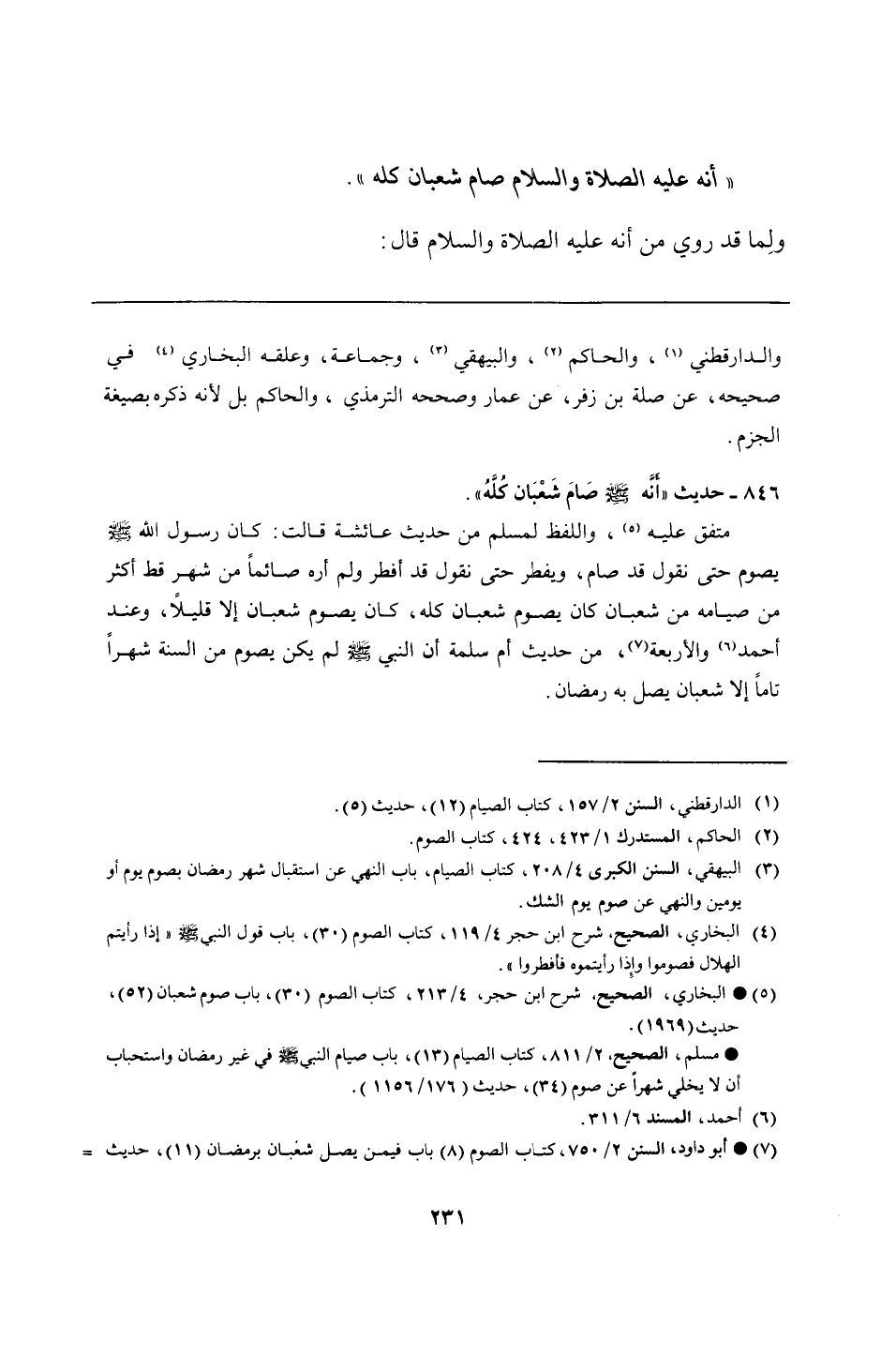 846 - حديث "أنَّه - صلى الله عليه وسلم - صَامَ شَعْبَان كُلَّهُ".