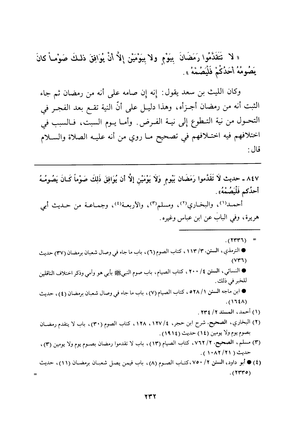 847 - حديث لَا تَقَدَّموا رَمَضَان بَيْومٍ وَلَا يَوْمَيْنِ إلَّا أن يُوَافِقَ ذَلِكَ صَوْمًا كَانَ يَصُومُهُ أحدُكم فَلْيَصُمْهُ".