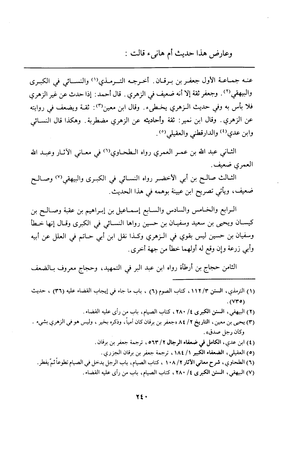 عنه جماعة الأول جعفر بن برقان. أخرجه الترمذي والنسائي في الكبرى والبيهقي. وجعفر ثقة إلا أنه ضعيف في الزهريّ. قال أحمد: إذا حدث عن غير الزهريّ فلا بأس به وفي حديث الزهريّ يخطئ. وقال ابن معين: ثقة ويضعف في روايته عن الزهريّ. وقال ابن نمير: ثقة وأحاديثه عن الزهريّ مضطربة. وهكذا قال النسائي وابن عدي والدارقطني والعقيلي.