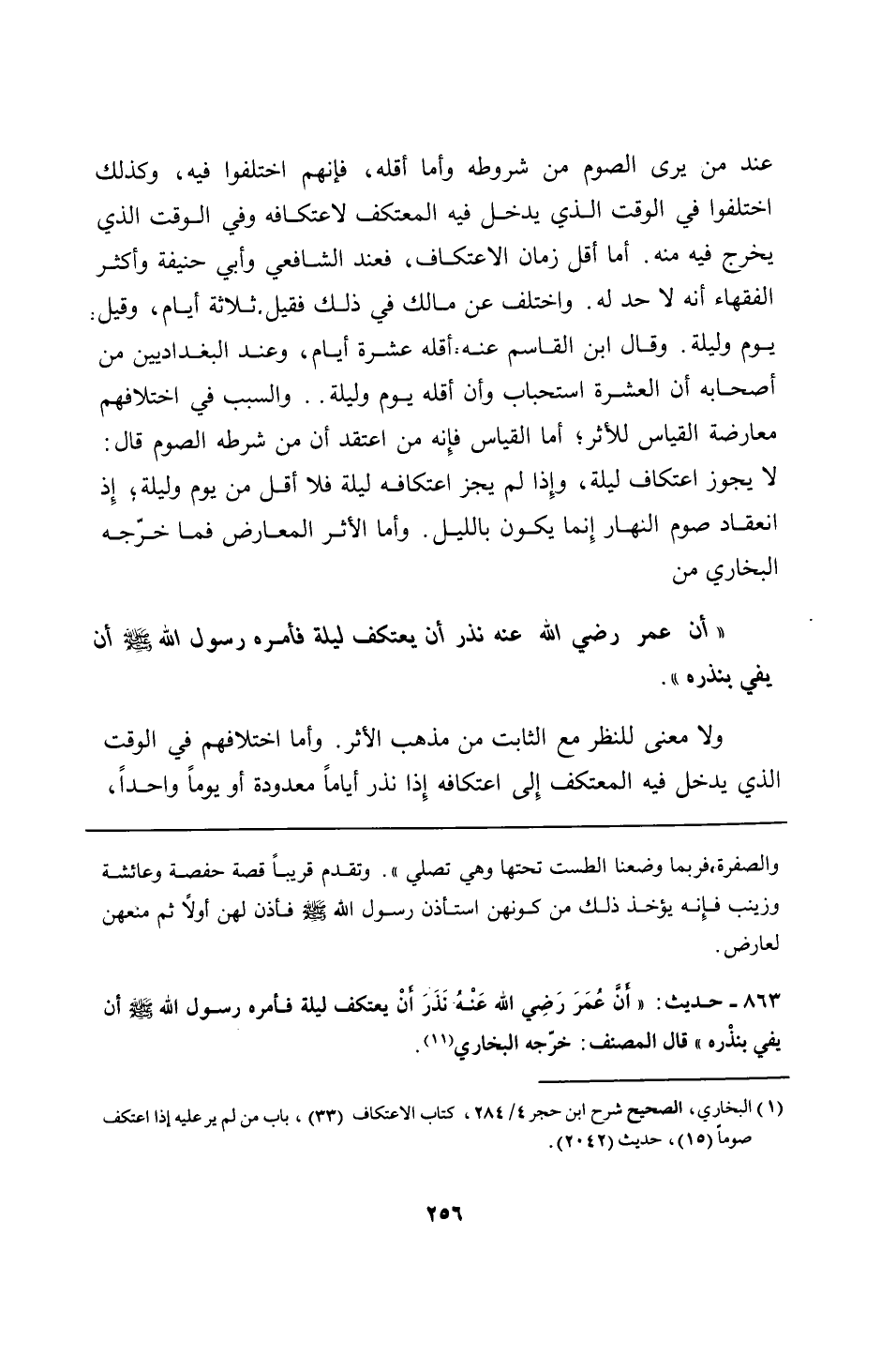 863 - حديث: "أَنَّ عُمَرَ -رَضِي الله عَنْهُ- نَذَرَ أن يعتكف ليلة فأمره رسول الله - صلى الله عليه وسلم - أن يفي بنذْره" قال المصنف: خرّجه البخاري.