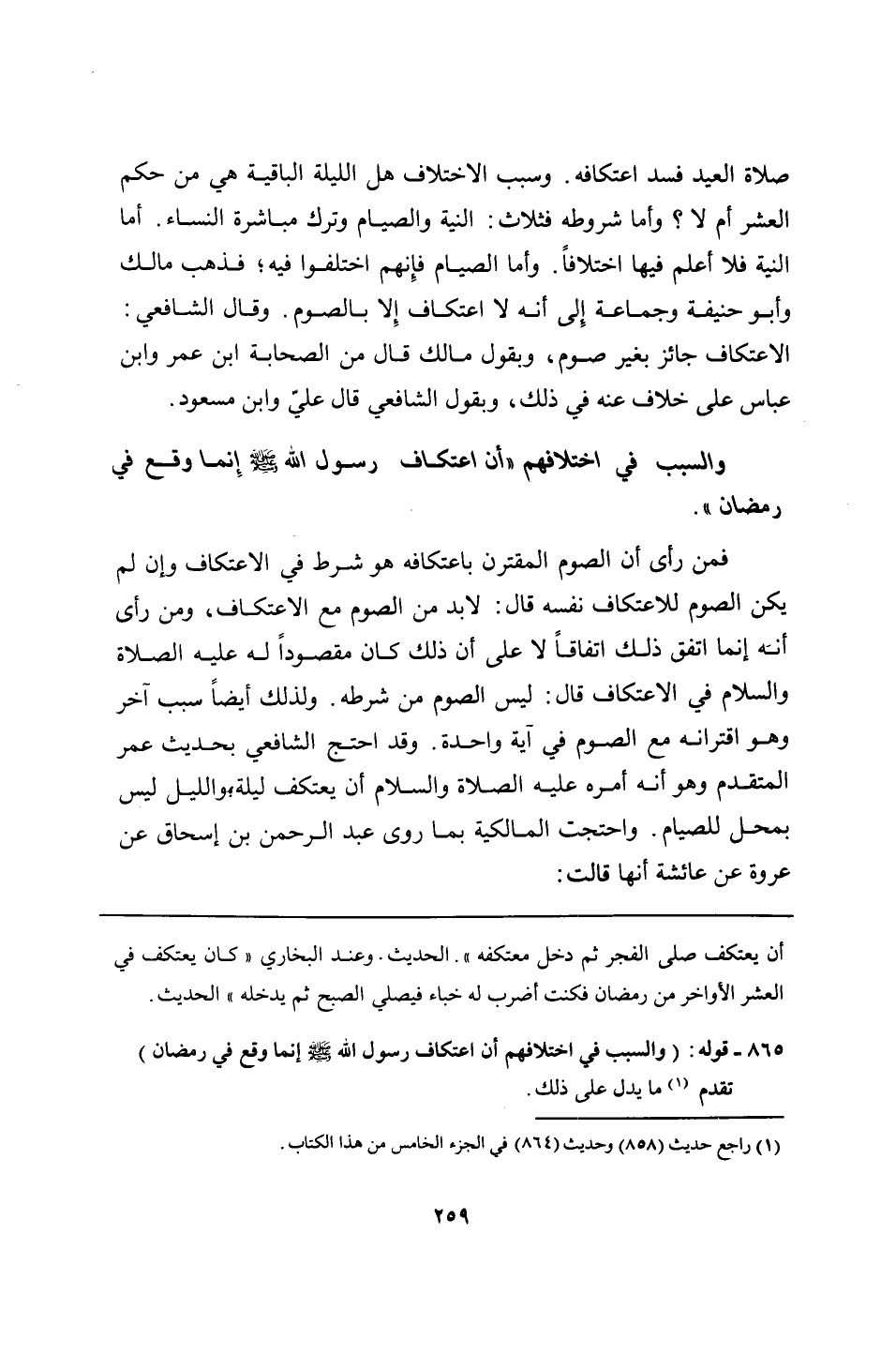 865 - قوله: (والسبب في اختلافهم أن اعتكاف رسول الله - صلى الله عليه وسلم - إنما وقع في رمضان)