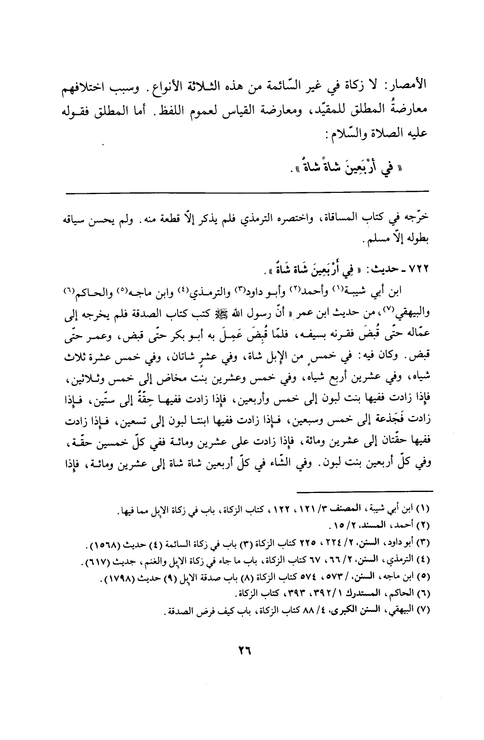 722 - حديث: "فِي أَرْبَعِينَ شَاة شَاةٌ".