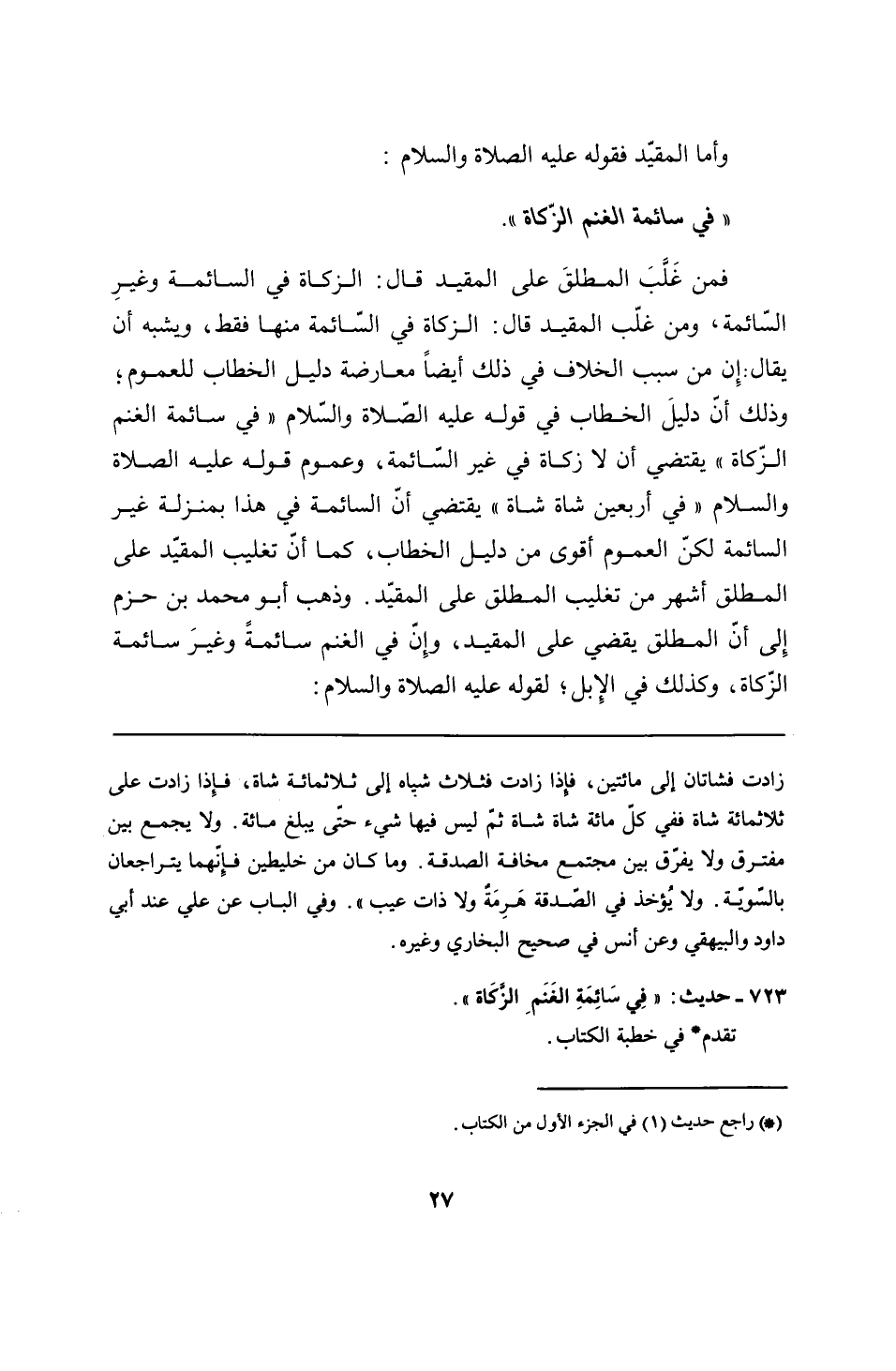 723 - حديث: "فِي سَائِمَةِ الغَنَمِ الزَّكَاة".