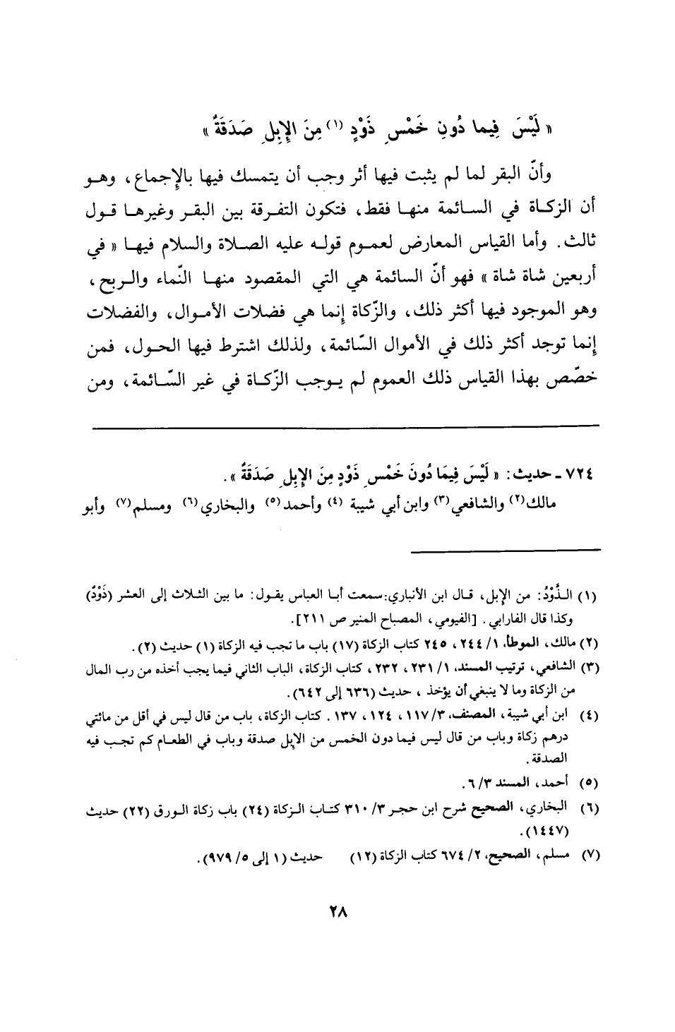 724 - حديث: "لَيْسَ فِيمَا دُونَ خَمْسِ ذَوْدٍ مِنَ الإبِلِ صَدَقَةٌ".