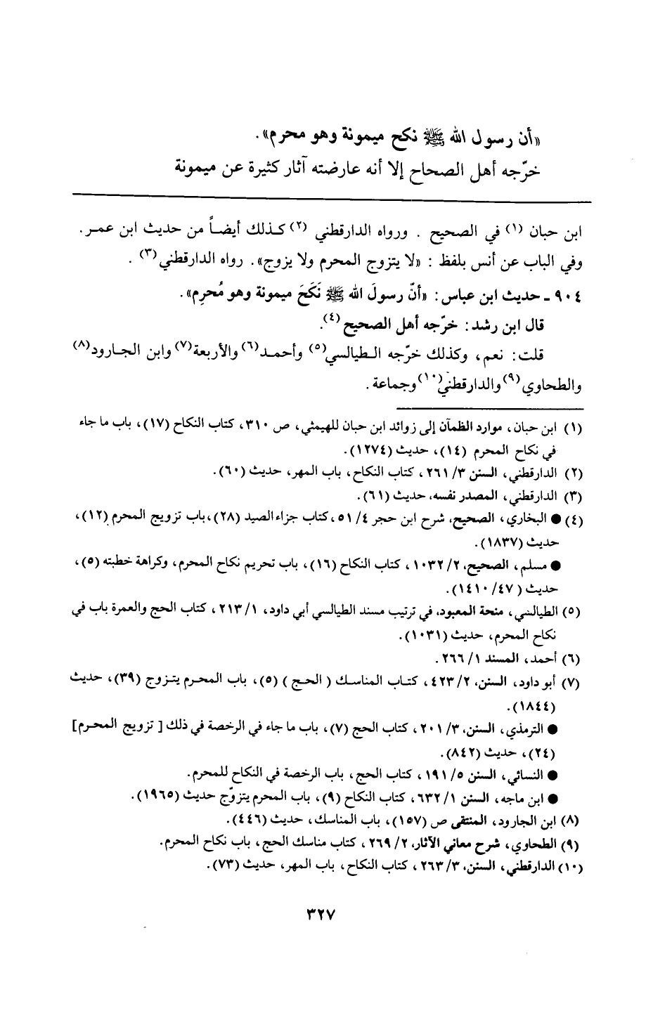 904 - حديث ابن عباس: "أنّ رسولَ الله - صلى الله عليه وسلم - نَكَحَ ميمونة وهو مُحرِم".