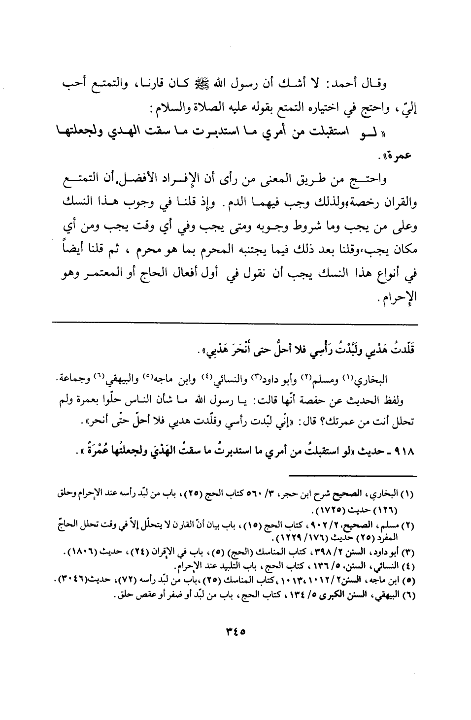 918 - حديث "لو استقبلتُ من أمري ما استدبرتُ ما سقتُ الهَدْيَ ولجعلتُها عُمْرَةً".