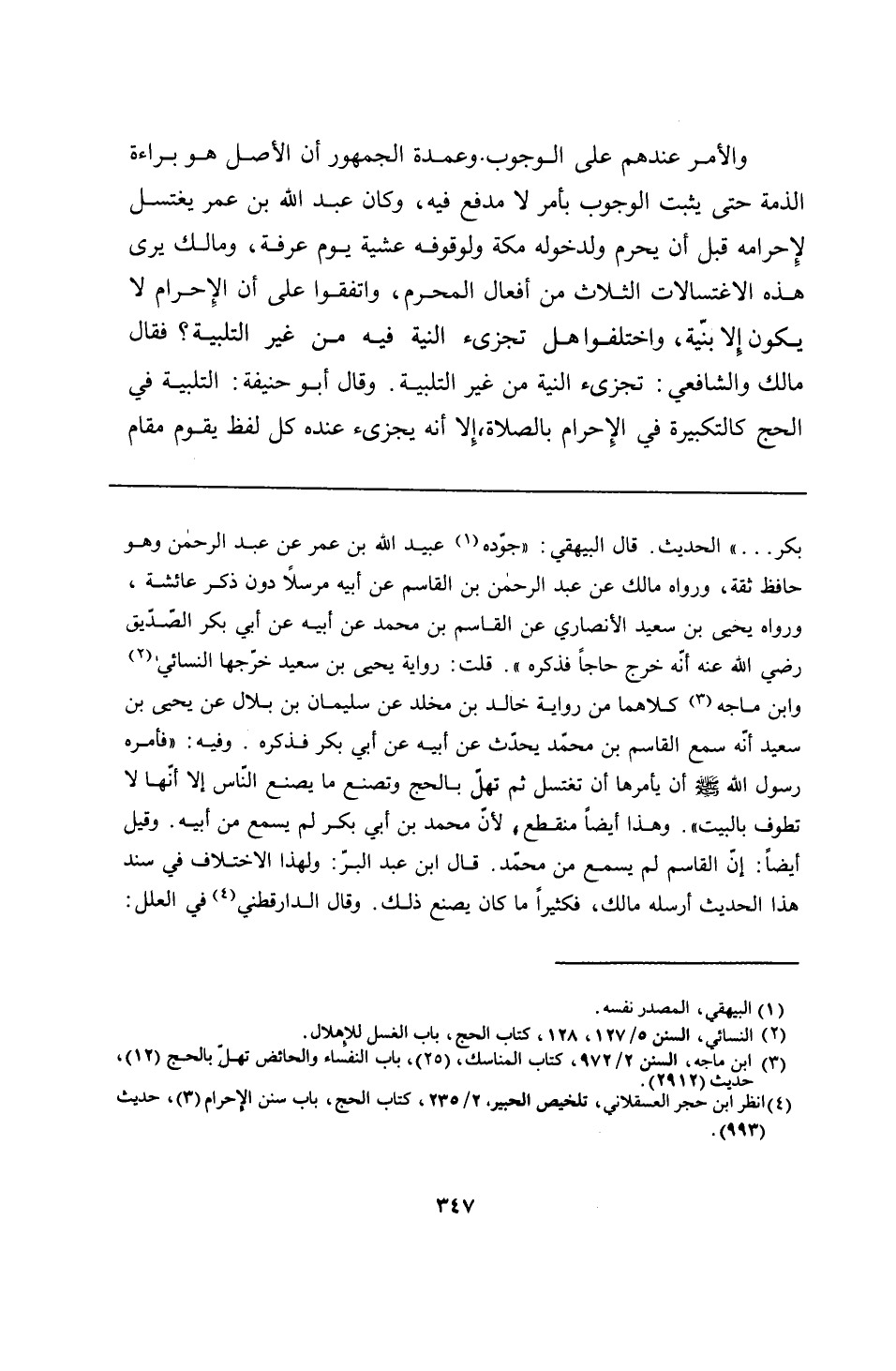بكر. . . ." الحديث. قال البيهقي: "جوّده عبيد الله بن عمر عن عبد الرحمن وهو حافظ ثقة، ورواه مالك عن عبد الرحمن بن القاسم عن أبيه مرسلًا دون ذكر عائشة، ورواه يحيى بن سعيد الأنصاري عن القاسم بن محمد عن أبيه عن أبي بكر الصّدّيق - رضي الله عنه - أنه خرج حاجًا فذكره". قلت: رواية يحيى بن سعيد خرّجها النسائي وابن ماجه كلاهما من رواية خالد بن مخلد عن سليمان بن بلال عن يحيى بن سعيد أنّه سمع القاسم بن محمّد يحدّث عن أبيه عن أبي بكر فذكره. وفيه: "فأمره رسول الله - صلى الله عليه وسلم - أن يأمرها أن تغتسل ثم تهلّ بالحج وتصنع ما يصنع النّاس إلا أنّها لا تطوف بالبيت". وهذا أيضًا منقطع، لأنّ محمد بن أبي بكر لم يسمع من أبيه. وقيل أيضًا: إنّ القاسم لم يسمع من محمّد. قال ابن عبد البرّ: ولهذا الاختلاف في سند هذا الحديث أرسله مالك، فكثيرًا ما كان يصنع ذلك. وقال الدارقطني في العلل: