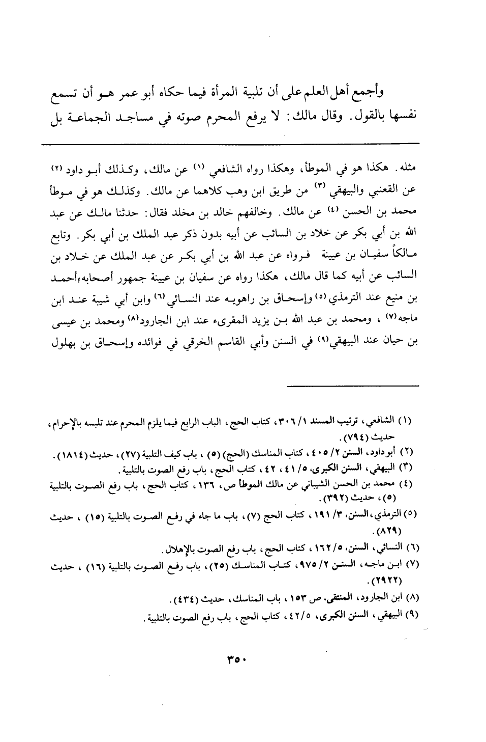 مثله. هكذا هو في الموطأ، وهكذا رواه الشافعي عن مالك، وكذلك أبو داود عن القعنبي والبيهقي من طريق ابن وهب كلاهما عن مالك. وكذلك هو في موطأ محمد بن الحسن عن مالك. وخالفهم خالد بن مخلد فقال: حدثنا مالك عن عبد الله بن أبي بكر عن خلاد بن السائب عن أبيه بدون ذكر عبد الملك بن أبي بكر. وتابع مالكًا سفيان بن عيينة فرواه عن عبد الله بن أبي بكر عن عبد الملك عن خلاد بن السائب عن أبيه كما قال مالك، هكذا رواه عن سفيان بن عيينة جمهور أصحابه؛ أحمد بن منيع عند الترمذي وإسحاق بن راهويه عند النسائي وابن أبي شيبة عند ابن ماجه، ومحمد بن عبد الله بن يزيد المقرئ عند ابن الجارود ومحمد بن عيسى بن حيان عند البيهقي في السنن وأبي القاسم الخرقي في فوائده وإسحاق بن بهلول