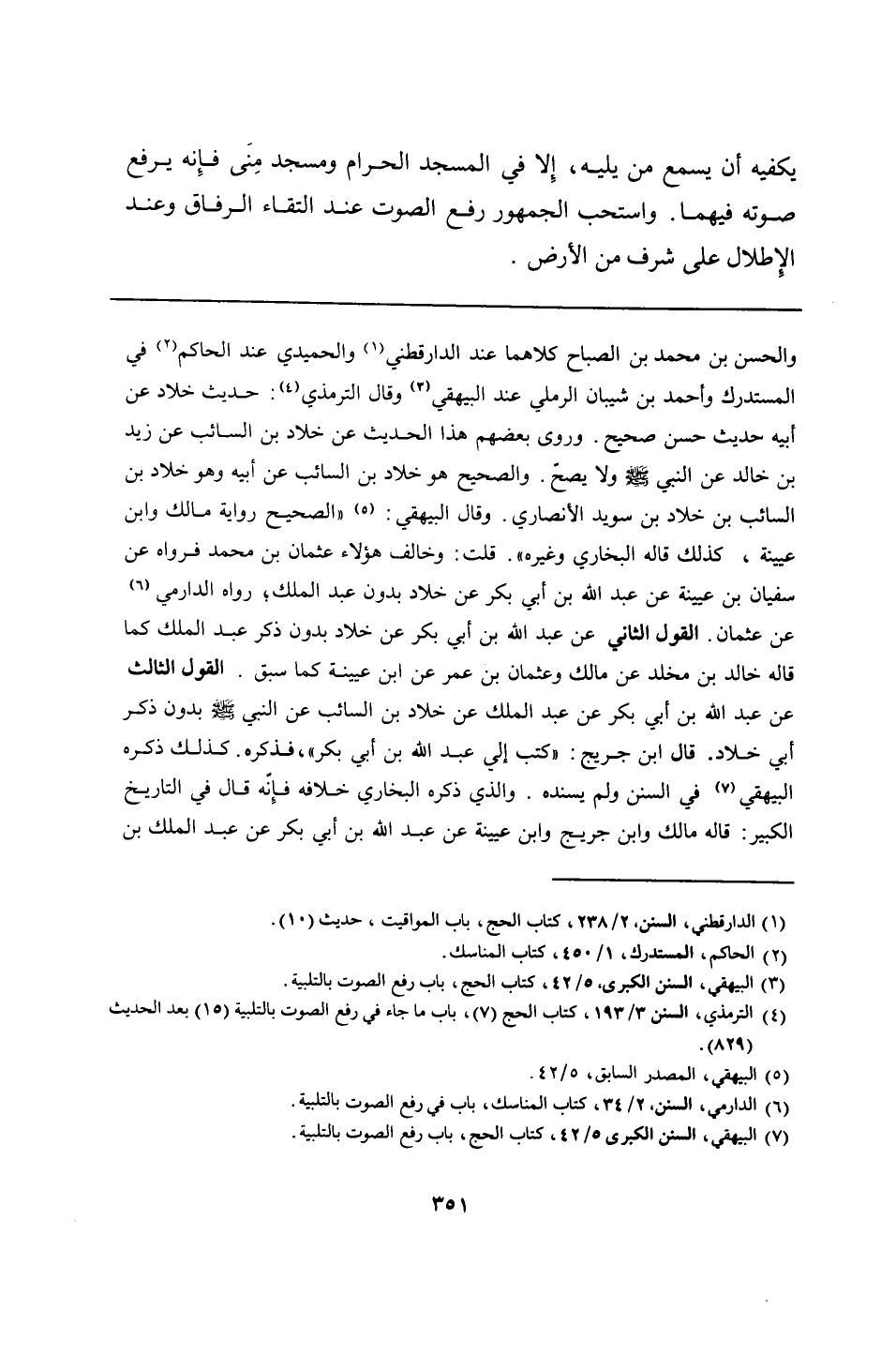 والحسن بن محمد بن الصباح كلاهما عند الدارقطني والحميدي عند الحاكم في المستدرك وأحمد بن شيبان الرملي عند البيهقي وقال الترمذي: حديث خلاد عن أبيه حديث حسن صحيح. وروى بعضهم هذا الحديث عن خلاد بن السائب عن زيد بن خالد عن النبي - صلى الله عليه وسلم - ولا يصحّ. والصحيح هو خلاد بن السائب عن أبيه وهو خلاد بن السائب بن خلاد بن سويد الأنصاري. وقال البيهقي: "الصحيح رواية مالك وابن عيينة، كذلك قاله البخاري وغيره". قلت: وخالف هؤلاء عثمان بن محمد فرواه عن سفيان بن عيينة عن عبد الله بن أبي بكر عن خلاد بدون عبد الملك؛ رواه الدارمي عن عثمان. القول الثانى عن عبد الله بن أبي بكر عن خلاد بدون ذكر عبد الملك كما قاله خالد بن مخلد عن مالك وعثمان بن عمر عن ابن عيينة كما سبق. القول الثالث عن عبد الله بن أبي بكر عن عبد الملك عن خلاد بن السائب عن النبي - صلى الله عليه وسلم - بدون ذكر أبي خلاد. قال ابن جريج: "كتب إلي عبد الله بن أبي بكر"، فذكره. كذلك ذكره البيهقي في السنن ولم يسنده. والذي ذكره البخاري خلافه فإِنّه قال في التاريخ الكبير: قاله مالك وابن جريج وابن عيينة عن عبد الله بن أبي بكر عن عبد الملك بن