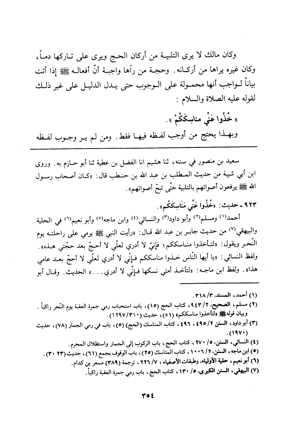 923 - حديث: "خُذُوا عَنِّي مَنَاسِكَكُم".