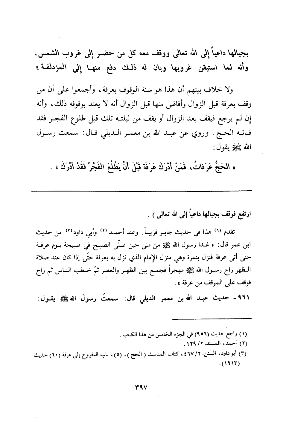 تقدم هذا في حديث جابر قريبًا. وعند أحمد وأبي داود من حديث ابن عمر قال: "غدا رسول الله - صلى الله عليه وسلم - من منى حين صلّى الصبح في صبيحة يوم عرفة حتى أتى عرفة فنزل بنمرة وهي منزل الإِمام الذي نزل به بعرفة حتّى إذا كان عند صلاة الظهر راح رسول الله - صلى الله عليه وسلم - مهجرًا فجمع بين الظهر والعصر ثمّ خطب الناس ثم راح فوقف على الموقف من عرفة".