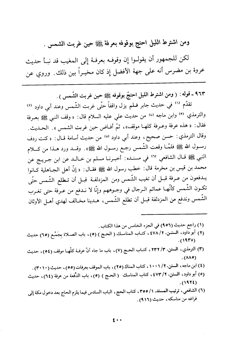 963 - قوله: (ومن اشترط الليل احتجّ بوقوفه - صلى الله عليه وسلم - حين غربت الشّمس).