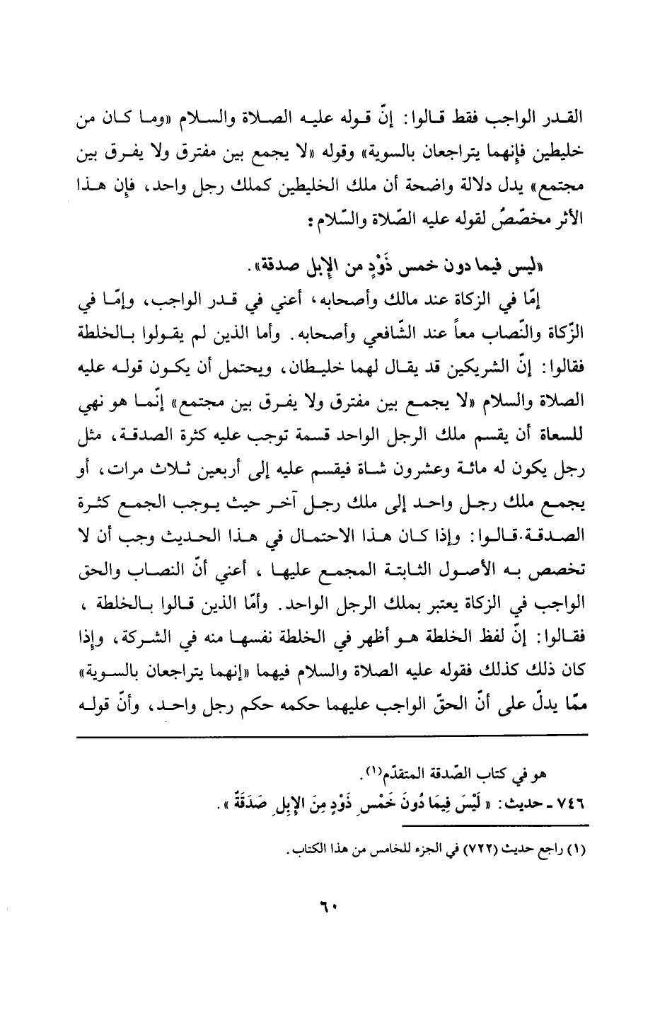746 - حديث: "لَيْسَ فِيمَا دونَ خَمْسِ ذَوْدٍ مِنَ الإبِلِ صدَقَةٌ".
