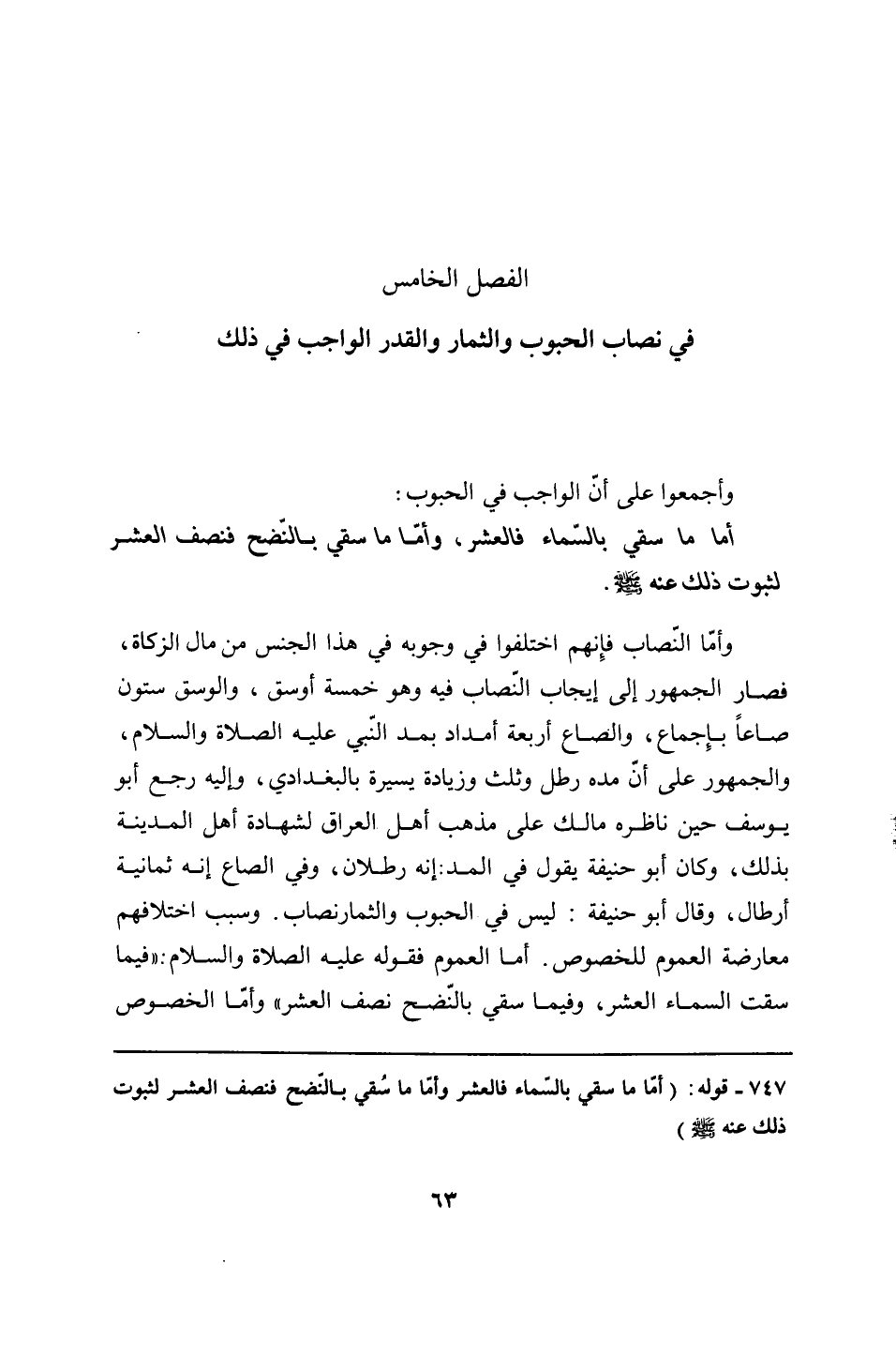 الفصل الخامس: في نصاب الحبوب والثمار والقدر الواجب في ذلك