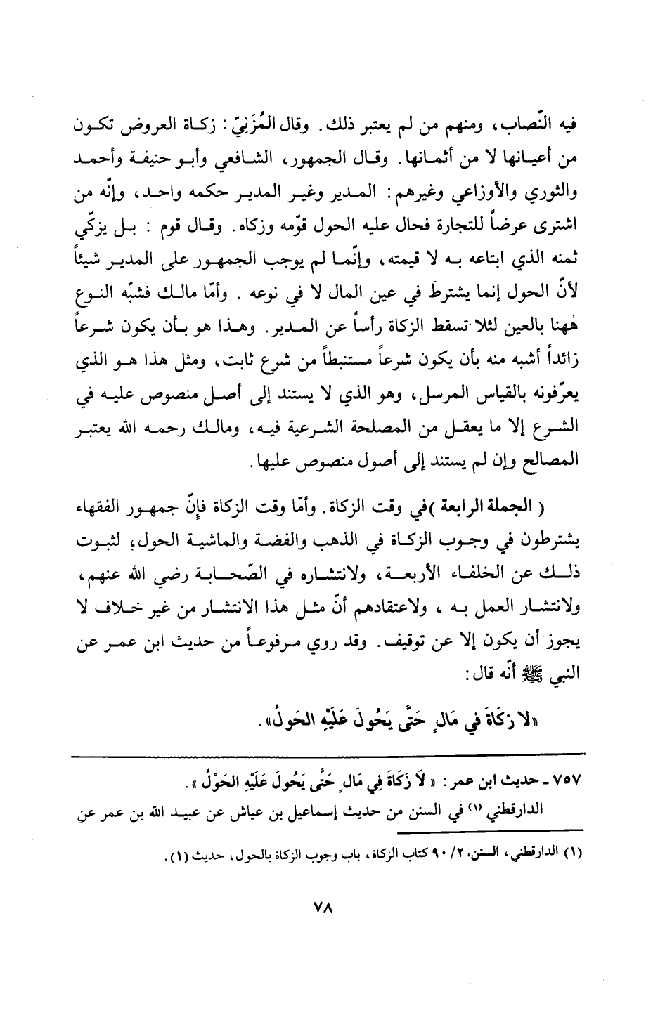 757 - حديث ابن عمر: "لَا زَكَاةَ في مال حَتَّى يَحُولَ عَلَيْهِ الحَوْلُ".