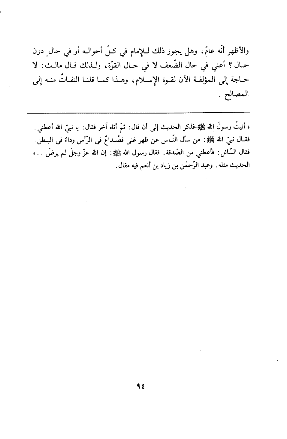 "أتيت رسولَ الله - صلى الله عليه وسلم -. فذكر الحديث إلى أن قال: ثمّ أتاه آخر فقال: يا نبيّ الله أعطني. فقال نبي الله - صلى الله عليه وسلم -: من سأل الناس عن ظهر غنى فصُداعٌ في الرأس وداءٌ في البطن. فقال السّائل: فأعطني من الصّدقة. فقال رسول الله - صلى الله عليه وسلم -: إن الله -عَزَّ وَجَلَّ- لم يرضَ. ." الحديث مثله. وعبد الرحمن بن زياد بن أنعم فيه مقال.