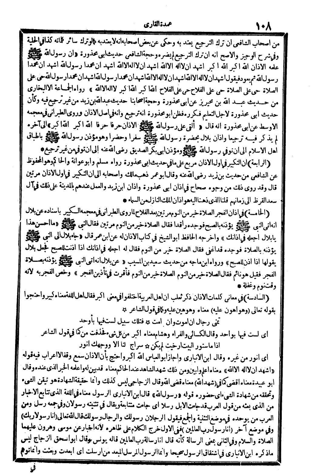 من أَصْحَاب الشَّافِعِي: إِن ترك الترجيع يعْتد بِهِ، وَحكى عَن بعض أَصْحَابه أَنه لَا يعْتد بِهِ كَمَا لَو ترك سَائِر كَلِمَاته، كَذَا فِي (الْحِلْية) . وَفِي (شرح الْوَجِيز) : وَالأَصَح أَنه إنْ ترك الترجيع لم يضرّهُ، وَحجَّة الشَّافِعِي حَدِيث أبي مَحْذُورَة: (أَن رَسُول الله صلى الله عَلَيْهِ وَسلم علمه الْأَذَان: الله أكبر الله أكبر، أشهد أَن لَا إِلَه إِلَّا الله، أشهد أَن لَا إِلَه إِلَّا الله، أشهد أَن مُحَمَّدًا رَسُول الله أشهد أَن مُحَمَّدًا رَسُول الله، ثمَّ يعود فَيَقُول: أشهد أَن لَا إِلَه إِلَّا الله، أشهد أَن لَا إِلَه إِلَّا الله، أشهد أَن مُحَمَّدًا رَسُول الله أشهد أَن مُحَمَّدًا رَسُول الله حَيّ على الصَّلَاة حَيّ على الصَّلَاة، حَيّ على الْفَلاح حَيّ على الْفَلاح، الله أكبر الله أكبر لَا إِلَه إِلَّا الله) . رَوَاهُ الْجَمَاعَة إلاَّ البُخَارِيّ من حَدِيث عبد الله بن محيريز عَن أبي مَحْذُورَة، وَحجَّة أَصْحَابنَا حَدِيث عبد الله بن زيد من غير تَرْجِيع فِيهِ، وَكَأن حَدِيث أبي مَحْذُورَة لأجل التَّعْلِيم فكرره، فَظن أَبُو مَحْذُورَة أَنه تَرْجِيع، وَأَنه فِي أصل الْأَذَان، وروى الطَّبَرَانِيّ فِي (مُعْجَمه الْأَوْسَط) عَن أبي مَحْذُورَة أَنه قَالَ: (ألْقى عَليّ رَسُول الله صلى الله عَلَيْهِ وَسلم الْأَذَان حرفا حرفا: الله أكبر الله أكبر) إِلَى آخِره، لم يذكر فِيهِ ترجيعا. وأذان بِلَال بِحَضْرَة رَسُول الله صلى الله عَلَيْهِ وَسلم سفرا وحضرا، وَهُوَ مُؤذن رَسُول الله صلى الله عَلَيْهِ وَسلم بإطباق أهل الْإِسْلَام إِلَى أَن توفّي رَسُول الله صلى الله عَلَيْهِ وَسلم، ومؤذن أبي بكر الصّديق رَضِي الله تَعَالَى عَنهُ إِلَى أَن توفّي من غير تَرْجِيع.
