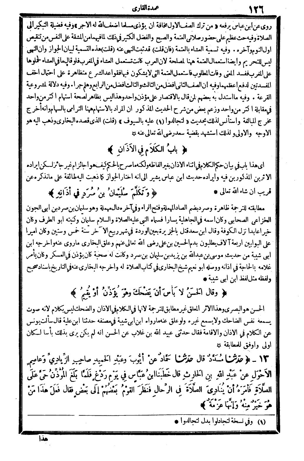 10 - (بابُ الكَلاَمِ فِي الأذَانِ)