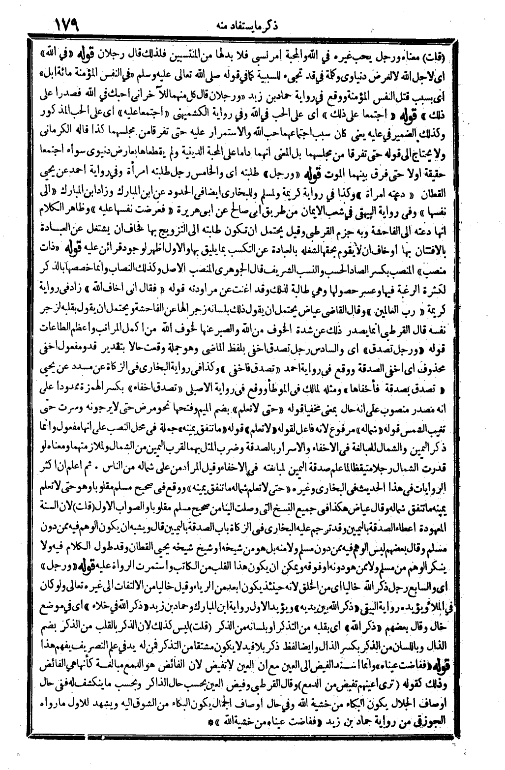ثمَّ إعلم أَن أَكثر الرِّوَايَات فِي هَذَا الحَدِيث فِي البُخَارِيّ وَغَيره: (حَتَّى لَا تعلم شِمَاله مَا تنْفق يَمِينه) ، وَوَقع فِي (صَحِيح مُسلم) مقلوبا، وَهُوَ: حَتَّى لَا تعلم يَمِينه مَا تنْفق شِمَاله. وَقَالَ عِيَاض: هَكَذَا فِي جَمِيع النّسخ الَّتِي وصلت إِلَيْنَا من (صَحِيح مُسلم) مقلوبا، وَالصَّوَاب الأول قلت: لِأَن السُّنَّة الْمَعْهُودَة إِعْطَاء الصَّدَقَة بِالْيَمِينِ، وَقد ترْجم عَلَيْهِ البُخَارِيّ فِي الزَّكَاة: بَاب الصَّدَقَة بِالْيَمِينِ، قَالَ: وَيُشبه أَن يكون الْوَهم فِيهِ مِمَّن دون مُسلم، وَقَالَ بَعضهم: لَيْسَ الْوَهم فِيهِ مِمَّن دون مُسلم وَلَا مِنْهُ، بل هُوَ من شَيْخه أَو شيخ شَيْخه: يحيى الْقطَّان، وَقد طول الْكَلَام فِيهِ، وَلَا يُنكر الْوَهم من مُسلم وَلَا مِمَّن هُوَ دونه أَو فَوْقه، وَيُمكن أَن يكون هَذَا الْقلب من الْكَاتِب واستمرت الروَاة عَلَيْهِ.