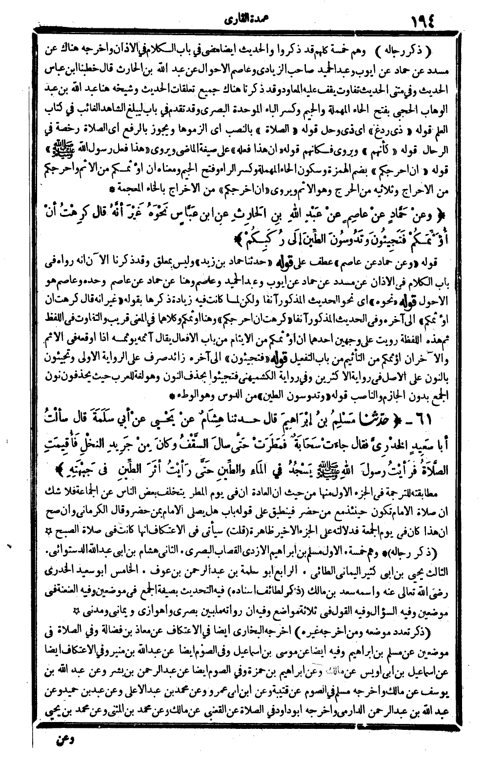 ذكر رِجَاله: وهم خَمْسَة: الأول: مُسلم بن إِبْرَاهِيم الْأَزْدِيّ القصاب الْبَصْرِيّ. الثَّانِي: هِشَام بن أبي عبد الله الدستوَائي. الثَّالِث: يحيى بن أبي كثير الْيَمَانِيّ الطَّائِي. الرَّابِع: أَبُو سَلمَة بن عبد الرَّحْمَن بن عَوْف. الْخَامِس: أَبُو سعيد الْخُدْرِيّ، رَضِي الله تَعَالَى عَنهُ، واسْمه: سعد بن مَالك.
