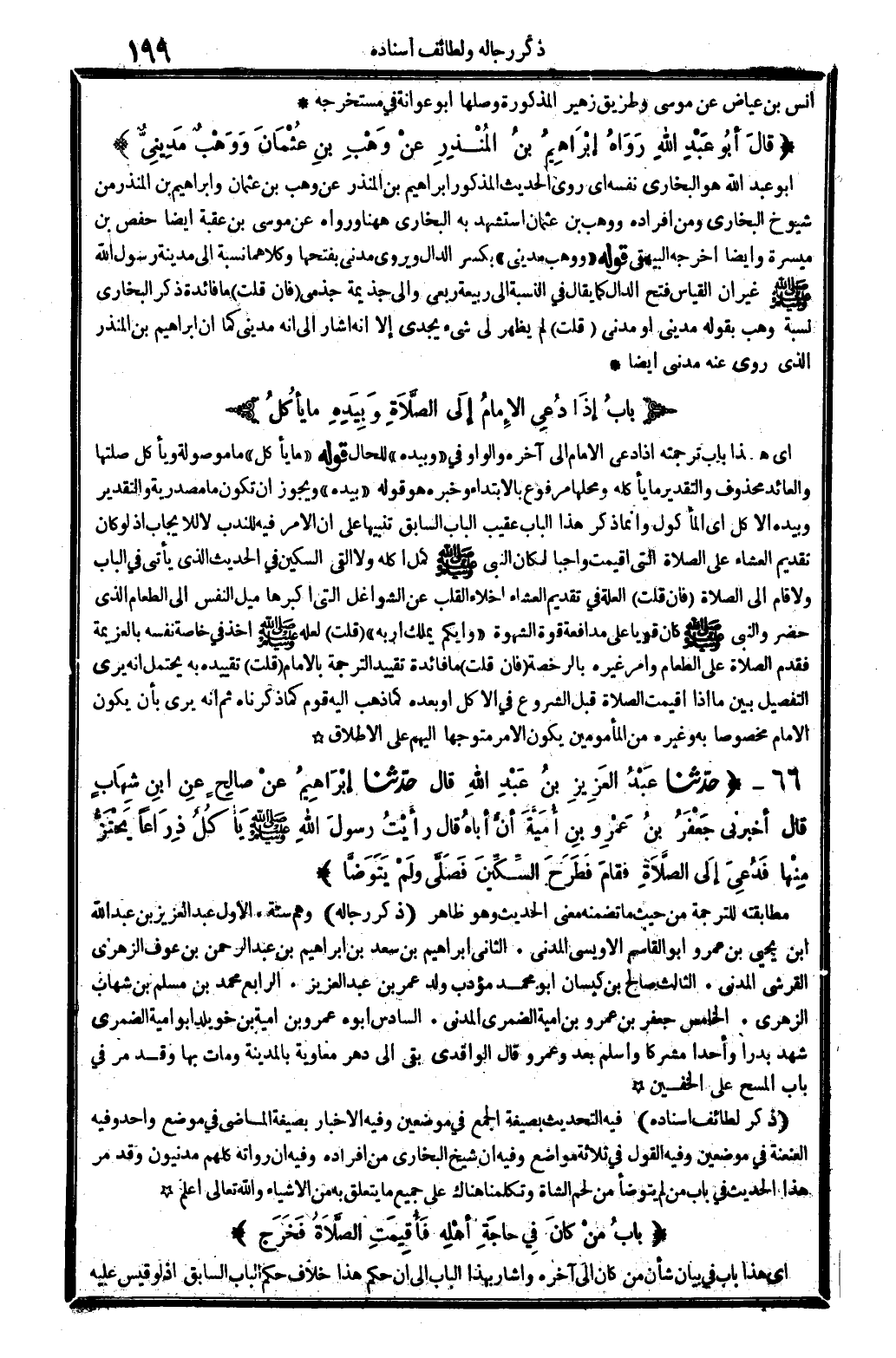 ذكر لطائف إِسْنَاده فِيهِ: التحديث بِصِيغَة الْجمع فِي موضِعين. وَفِيه: الْإِخْبَار بِصِيغَة الْمَاضِي فِي مَوضِع وَاحِد. وَفِيه: العنعنة فِي موضِعين. وَفِيه: القَوْل فِي ثَلَاثَة مَوَاضِع. وَفِيه: أَن شيخ البُخَارِيّ من أَفْرَاده. وَفِيه: أَن رُوَاته كلهم مدنيون.