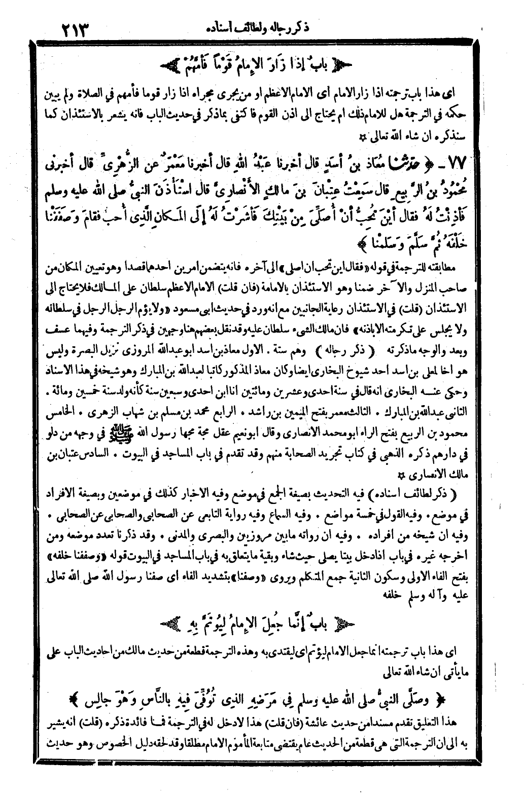 ذكر لطائف إِسْنَاده: فِيهِ: التحديث بِصِيغَة الْجمع فِي مَوضِع. وَفِيه: الْإِخْبَار كَذَلِك فِي موضِعين وبصيغة الْإِفْرَاد فِي مَوضِع. وَفِيه: القَوْل فِي خَمْسَة مَوَاضِع. وَفِيه: السماع. وَفِيه: رِوَايَة التَّابِعِيّ عَن التَّابِعِيّ عَن الصَّحَابِيّ والصحابي عَن الصَّحَابِيّ. وَفِيه: أَن شَيْخه من أَفْرَاده. وَفِيه: أَن رُوَاته مَا بَين مروزيين والبصري وَالْمَدَنِي.