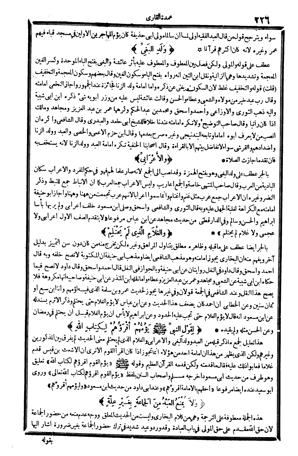 سَوَاء، ويترجح قَول من قَالَ: العَبْد الْفَقِيه أولى لما أَن سالما مولى أبي حُذَيْفَة كَانَ يؤم الْمُهَاجِرين الْأَوَّلين فِي مَسْجِد قبَاء فيهم عمر وَغَيره، لِأَنَّهُ كَانَ أَكْثَرهم قُرْآنًا.