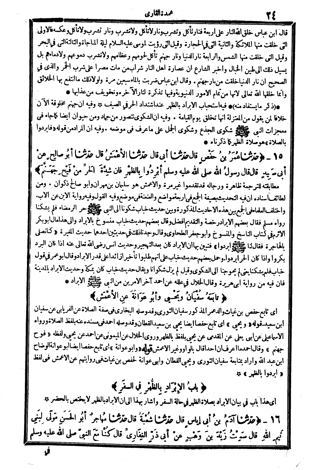538 - حدَّثنا عُمَرُ بنُ حَفْصٍ قَالَ حدَّثنا أبي قَالَ حدَّثنا الأعْمَش قَالَ حدَّثنا أبُو صَالِحٍ عنْ أبِي سَعِيدٍ قَالَ قَالَ رَسُول الله صلى الله عَلَيْهِ وَسلم أبْرِدُوا بِالظُّهْرِ فإنَّ شِدَّةَ الحَرِّ منْ فَيْحِ جَهَنَّمَ. (الحَدِيث 538 طرفه فِي: 3259) .