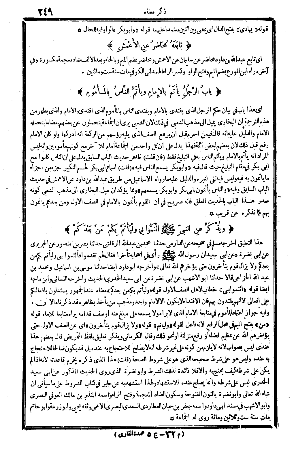 ويُذْكَرُ عنِ النبيِّ صلى الله عَلَيْهِ وَسلم: ائْتَمُّوا بِي ولْيَأتَمَّ بِكُمْ مَنْ بَعْدَكُمْ