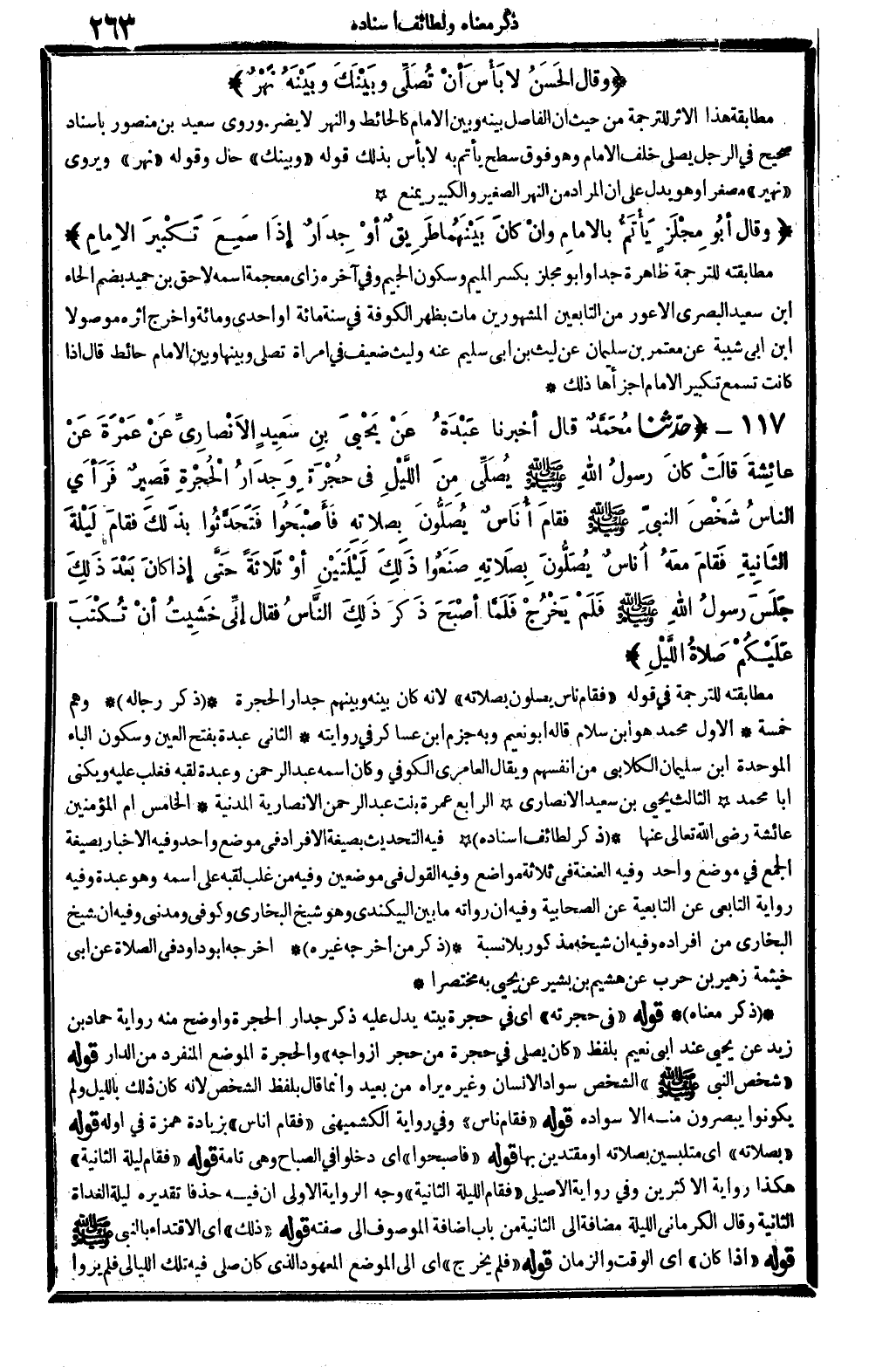 729 - حدَّثنا مُحَمَّدٌ قَالَ أخبرنَا عَبْدَةُ عَنْ يَحْيَى بنِ سَعِيدٍ الأنْصَارِيِّ عَنْ عَمْرَةَ عَنْ عائِشَةَ قالَتْ كانَ رسولُ الله صلى الله عَلَيْهِ وَسلم يُصلِّي مِنَ اللَّيْلِ فِي حُجْرَةٍ وَجِدَارُ الحُجْرَةِ قَصِير فَرَأي الناسُ شَخْصَ النبيِّ صلى الله عَلَيْهِ وَسلم فقَامَ أُنَاسٌ يُصَلُّونَ بِصَلاَتِهِ فَأصْبَحُوا فتَحَدَّثُوا بذَلِكَ فقامَ لَيْلَةَ الثَانِيةِ فَقامَ معَهُ أُنَاسٌ يُصَلُّونَ بِصَلاتِهِ صَنَعُوا ذَلِكَ لَيْلَتَيْنِ أوْ ثَلاثَةً حَتَّى إذَا كانَ بَعْدَ ذَلِكَ جَلَسَ رسولُ الله صلى الله عَلَيْهِ وَسلم فَلَمْ يَخْرُجْ فلَمَّا أصْبَحَ ذَكَرَ ذَلِكَ النَّاسُ فَقَالَ إنِّي خَشِيتُ أنْ تُكْتَبَ عَلَيْكُمْ صَلاةُ اللَّيْلِ.