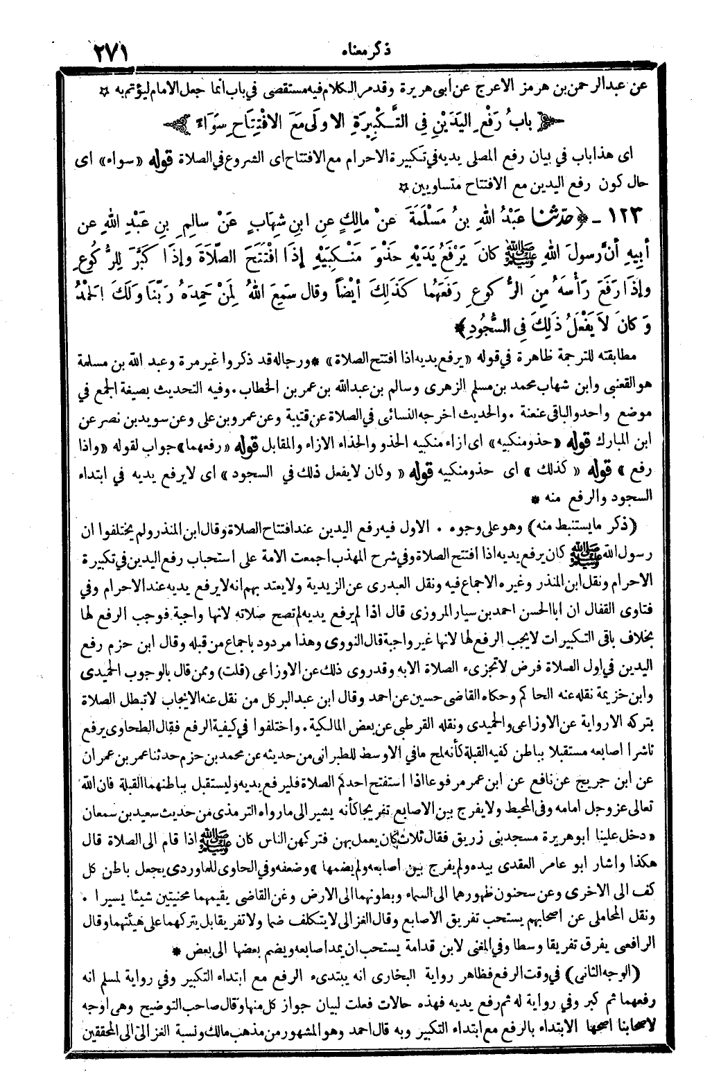 735 - حدَّثنا عَبْدُ الله بنُ مَسْلَمَةَ عنْ مَالِكٍ عنِ ابنِ شِهَابٍ عَنْ سَالِمِ بنِ عَبْدِ الله عنْ أبِيهِ أنَّ رسولَ الله صلى الله عَلَيْهِ وَسلم كانَ يَرْفَعُ يَدَيْهِ حَذْوَ مَنْكِبَيْهِ إذَا افْتَتَحَ الصَّلاَةَ وإذَا كَبَّرَ لِلرُّكُوعِ وإذَا رَفَعَ رَأْسَهُ مِنَ الرُّكُوعِ رَفَعَهُمَا كَذَلِكَ أَيْضا وَقَالَ سَمِعَ الله لِمَنْ حَمِدَهُ رَبَّنَا ولَكَ الحَمْدُ وكانَ لاَ يَفْعَلُ ذَلِكَ فِي السُّجُودِ.