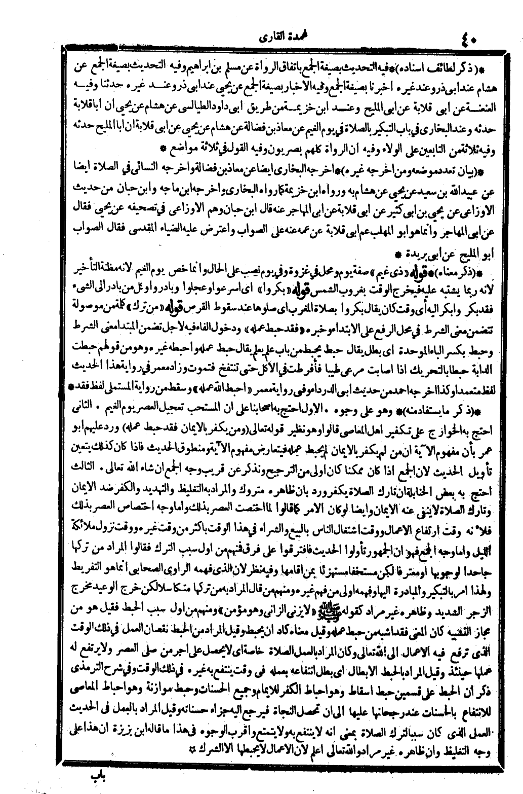 ذكر لطائف إِسْنَاده فِيهِ: التحديث بِصِيغَة الْجمع بِاتِّفَاق الروَاة عَن مُسلم بن إِبْرَاهِيم. وَفِيه: التحديث بِصِيغَة الْجمع عَن هِشَام عِنْد أبي ذَر، وَعند غَيره. أخبرنَا بِصِيغَة الْجمع. وَفِيه: الْإِخْبَار بِصِيغَة الْجمع عَن يحيى عِنْد أبي ذَر، وَعند غَيره: حَدثنَا. وَفِيه: العنعنة عَن أبي قلَابَة عَن أبي الْمليح، وَعند ابْن خُزَيْمَة: من طَرِيق أبي دَاوُد الطَّيَالِسِيّ عَن هِشَام عَن يحيى: أَن أَبَا قلَابَة حَدثهُ، وَعند البُخَارِيّ فِي بَاب التبكير بِالصَّلَاةِ فِي يَوْم الْغَيْم: عَن معَاذ بن فضَالة عَن هِشَام عَن يحيى عَن أبي قلَابَة: أَن أَبَا الْمليح حَدثهُ. وَفِيه: ثَلَاثَة من التَّابِعين على الْوَلَاء. وَفِيه: أَن الروَاة كلهم بصريون. وَفِيه: القَوْل فِي ثَلَاثَة مَوَاضِع.