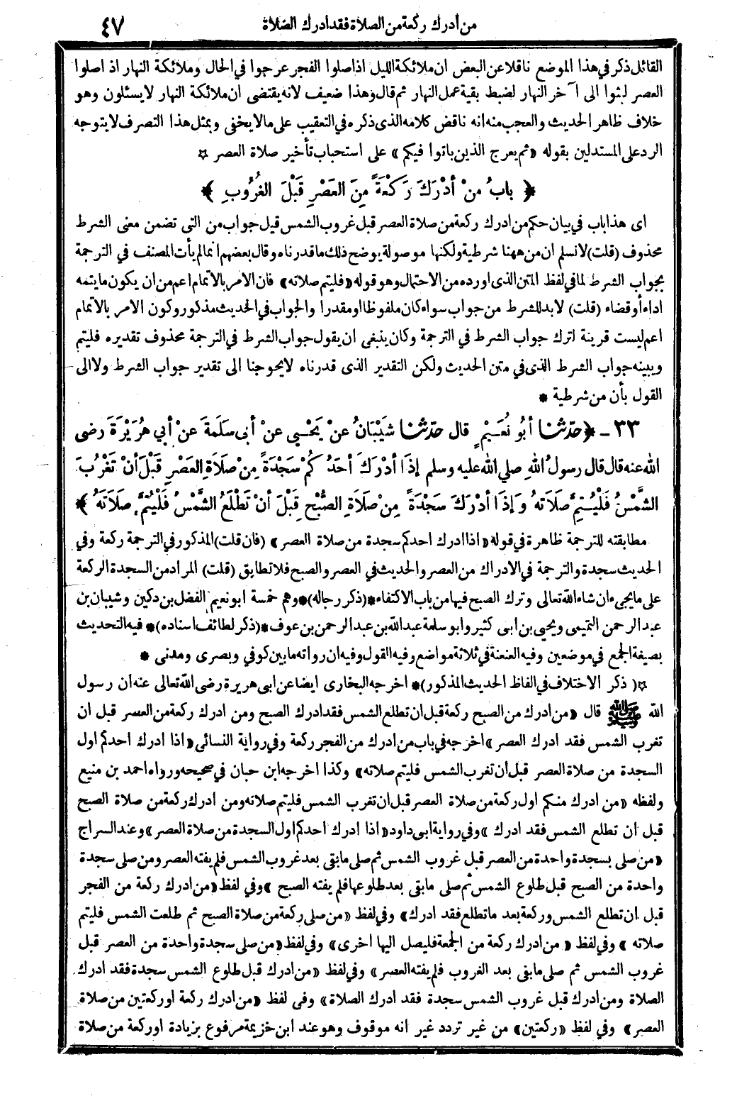 556 - حدَّثنا أبُو نَعِيمٍ قَالَ حدَّثنا شَيْبَانُ عَنْ يَحْيَى عنْ أبي سَلَمَةَ عَنْ أبِي هُرَيْرَةَ رَضِي الله تَعَالَى عَنهُ قَالَ قَالَ رسولُ الله صلى الله عَلَيْهِ وَسلم إِذا أَدْرَكَ أحَدُكُمْ سَجْدَةً مِنْ صَلاَةِ العَصْرِ قَبْلَ أنْ تَغْرُبَ الشَّمْسُ فَلْيُتِمَّ صَلاَتَهُ وَإِذَا أدْرَكَ سَجْدَةً مِنْ صَلاَةِ الصُّبْحِ قَبْلَ أنْ تَطْلَعُ الشَّمْسُ فَلْيُتِمَّ صَلاَتَهُ.