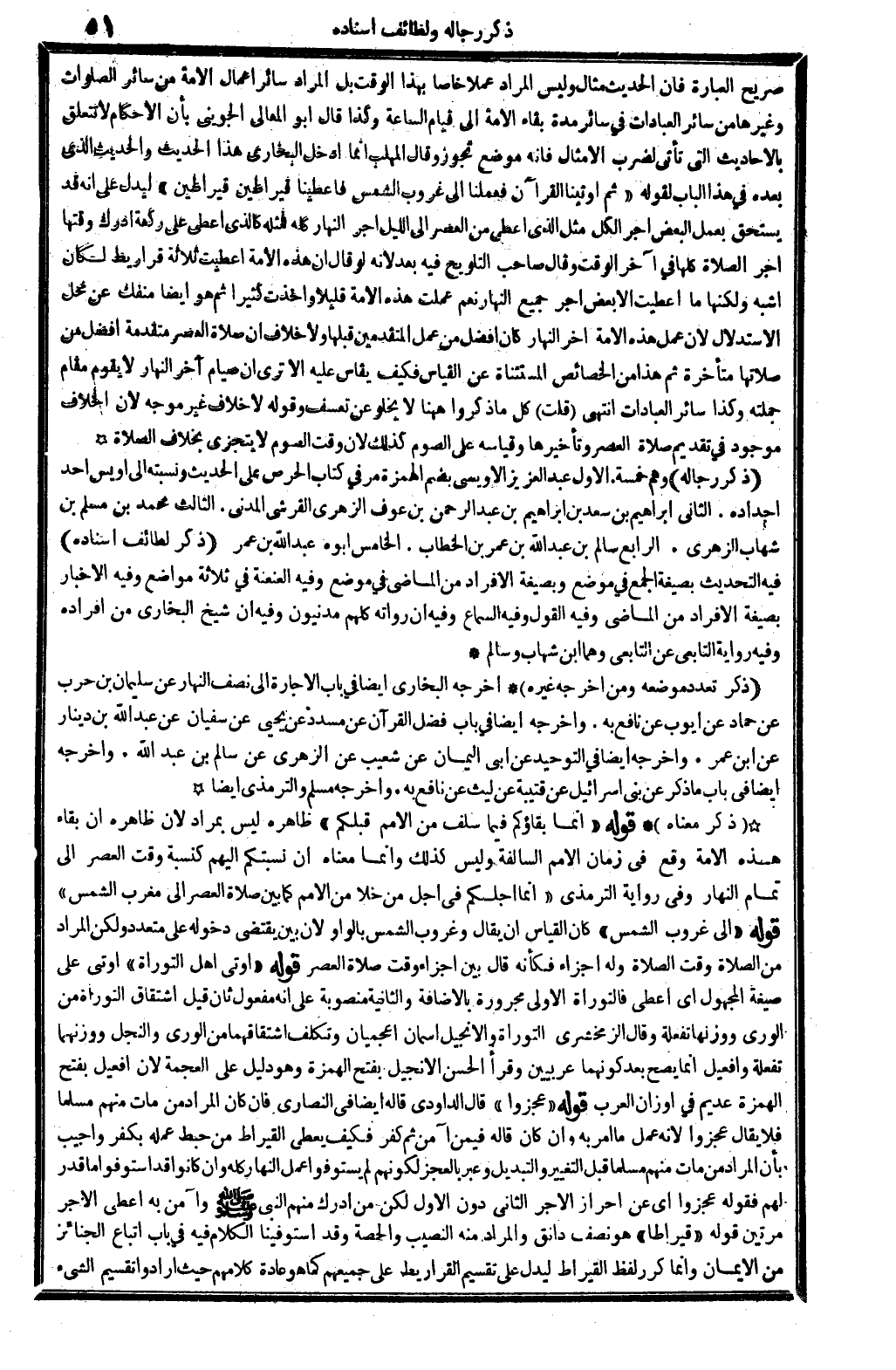 ذكر لطائف إِسْنَاده فِيهِ: التحديث بِصِيغَة الْجمع فِي مَوضِع، وبصيغة الْإِفْرَاد من الْمَاضِي فِي مَوضِع. وَفِيه: العنعنة فِي ثَلَاثَة مَوَاضِع. وَفِيه: الْإِخْبَار بِصِيغَة الافراد من الْمَاضِي. وَفِيه: القَوْل. وَفِيه: السماع. وَفِيه: أَن رُوَاته كلهم مدنيون. وَفِيه: أَن شيخ البُخَارِيّ من أَفْرَاده. وَفِيه: رِوَايَة التابعة عَن التَّابِعِيّ. وهما: ابْن شهَاب وَسَالم.