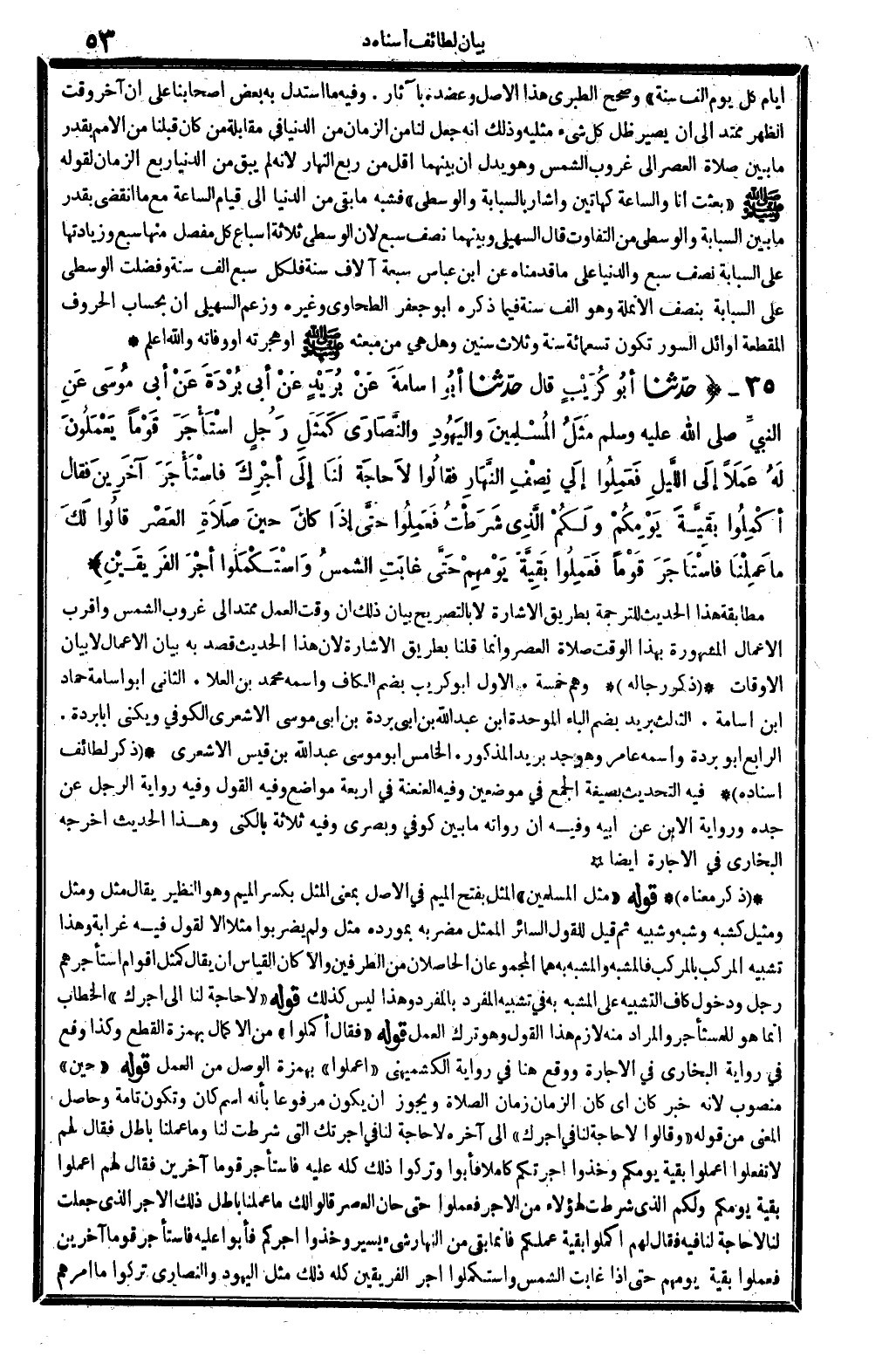 ذكر لطائف إِسْنَاده فِيهِ: التحديث بِصِيغَة الْجمع فِي موضِعين. وَفِيه: العنعنة فِي ثَلَاثَة مَوَاضِع. وَفِيه: القَوْل. وَفِيه: أَن رُوَاته مَا بَين كُوفِي وبصري ومدني.