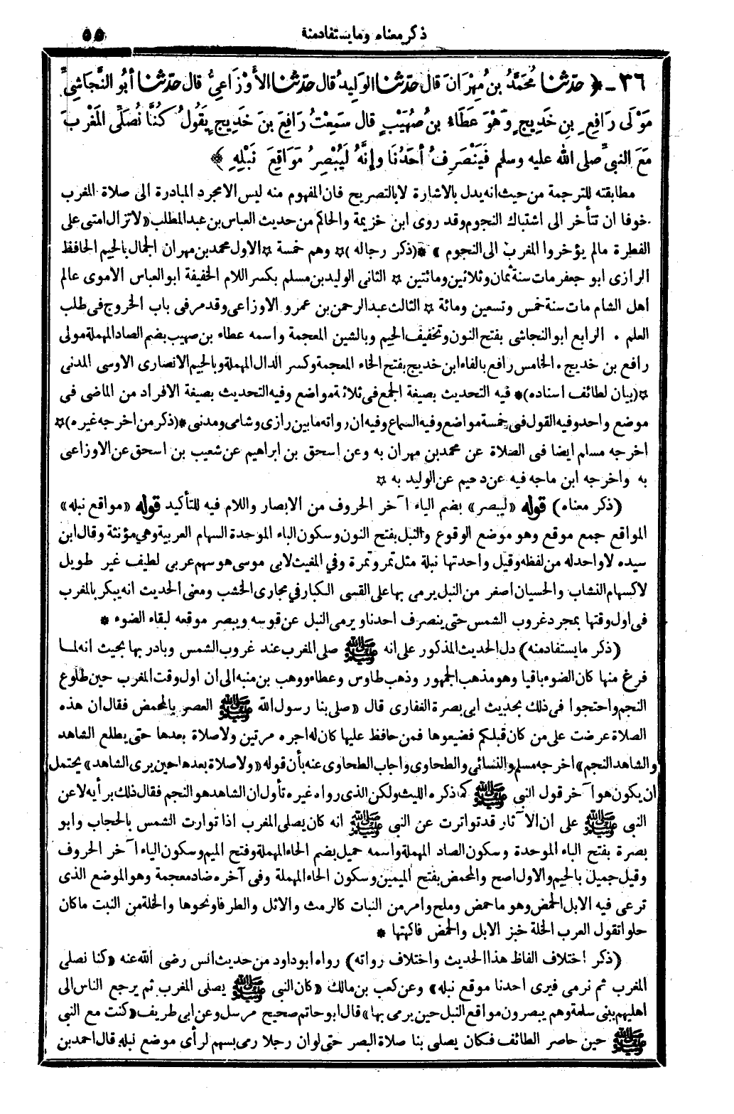 559 - حدَّثنا مُحَمَّدُ بنُ مَهْرَانَ قَالَ حدَّثنا الوَلِيدُ قَالَ حدَّثنا الأَوْزَاعِيُّ قَالَ حدَّثنا أبُو النَّجَاشِيِّ مَوْلَى رَافِعِ بنِ خَدِيجٍ وَهْوَ عَطَاءُ بنُ صُهَيْبٍ قَالَ سَمِعْتُ رَافِعَ بنَ خَدِيجٍ يَقُولُ كُنَّا نُصَلِّي المَغْرِبَ مَعَ النَّبِيِّ صلى الله عَلَيْهِ وَسلم فَيَنْصَرِفُ أحَدُنَا وإِنَّهُ لَيُبْصِرَ مَوَاقِعَ نَبْلِهِ.