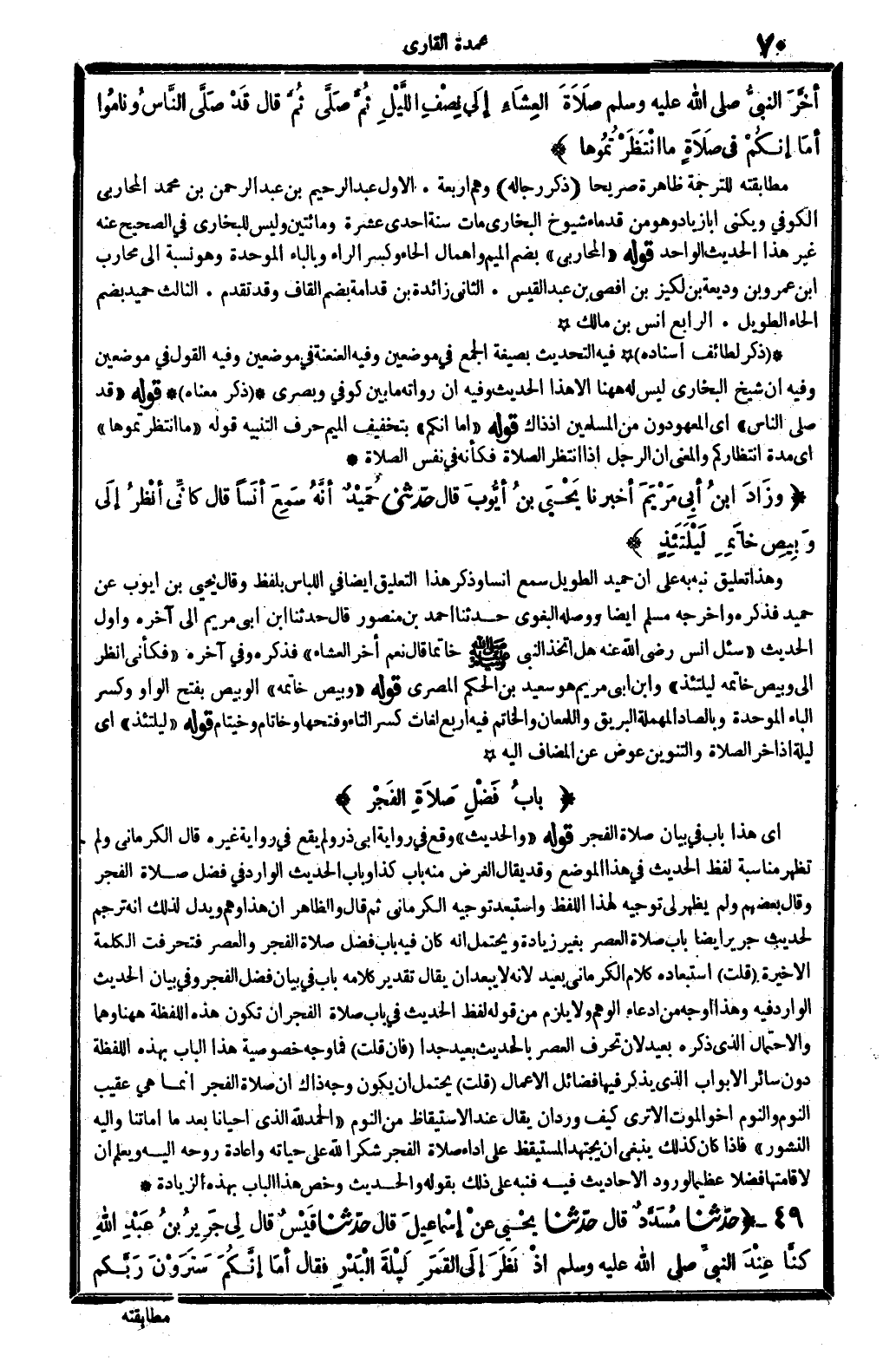 فَإِن قلت: فَمَا وَجه خُصُوصِيَّة هَذَا الْبَاب بِهَذِهِ اللَّفْظَة دون سَائِر الْأَبْوَاب الَّذِي يذكر فِيهَا فَضَائِل الْأَعْمَال؟ قلت: يحْتَمل أَن يكون وَجه ذَاك أَن صَلَاة الْفجْر إِنَّمَا هِيَ عقيب النّوم، وَالنَّوْم أَخُو الْمَوْت، أَلا ترى كَيفَ ورد أَن يُقَال عِنْد الاستيقاظ من النّوم: (الْحَمد لله الَّذِي أَحْيَانًا بَعْدَمَا أماتنا وَإِلَيْهِ النشور) . فَإِذا كَانَ كَذَلِك يَنْبَغِي أَن يجْتَهد المستيقظ على أَدَاء صَلَاة الْفجْر شكرا لله على حَيَاته وإعادة روحه إِلَيْهِ، وَيعلم أَن لإقامتها فضلا عَظِيما لوُرُود الْأَحَادِيث فِيهِ، فنبه على ذَلِك بقوله: والْحَدِيث، وَخص هَذَا الْبَاب بِهَذِهِ الزِّيَادَة.