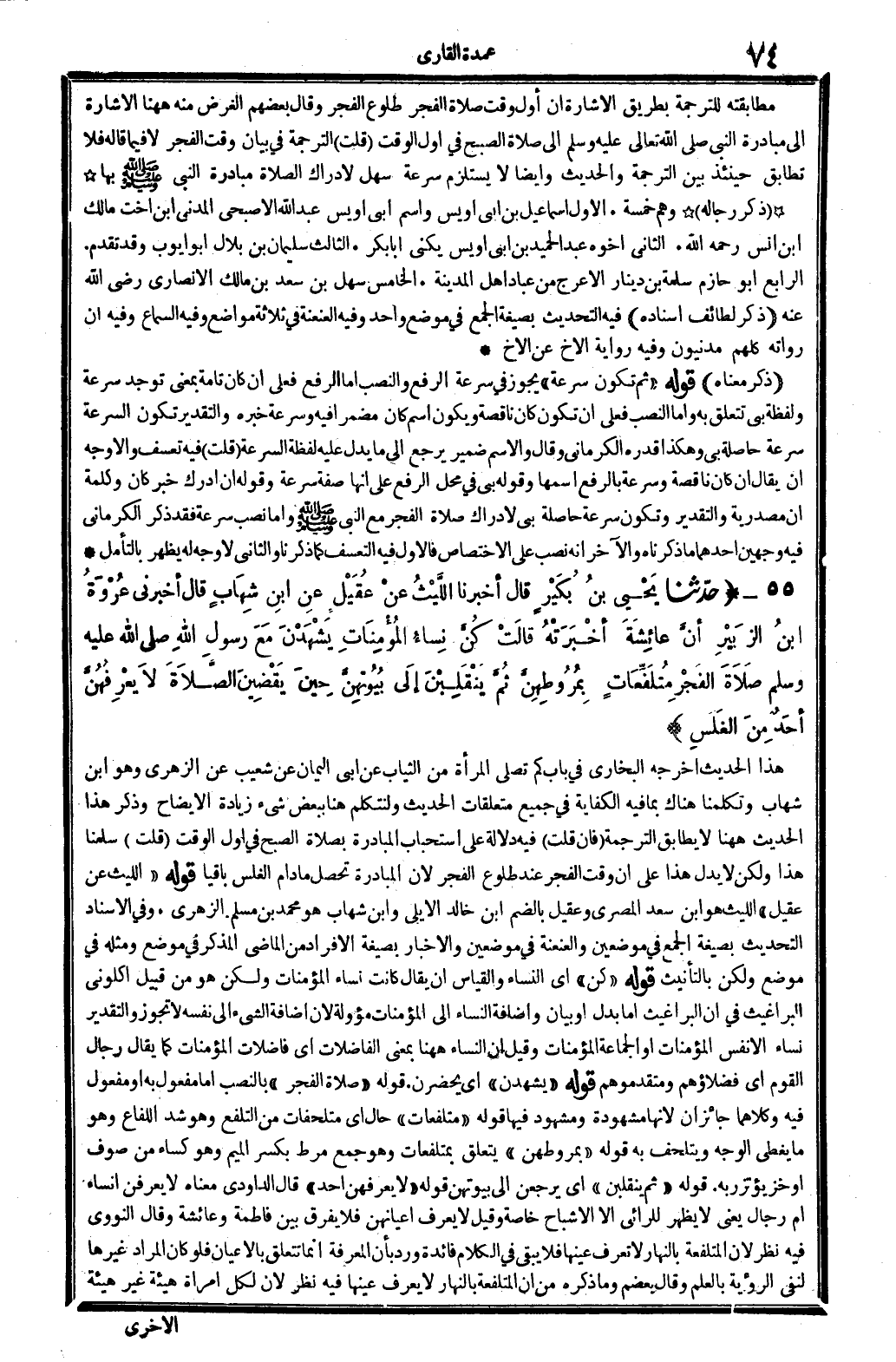 578 - حدَّثنا يَحْيَى بنُ بُكَيْرٍ قَالَ أخبرنَا اللَّيْثُ عنْ عُقَيْلٍ عنِ ابنِ شِهَابٍ قَالَ أَخْبرنِي عُرْوَةَ ابنُ الزبَيْرِ أنَّ عائِشَةَ أخْبَرَتْهُ قالَتْ كُنَّ نِساءُ المُؤْمِنَاتِ يَشْهَدْنَ مَعَ رَسولِ الله صلى الله عَلَيْهِ وَسلم صَلاَةَ الفَجْرِ مُتَلَفعاتٍ بِمُرُوطِهِنَّ ثُمَّ يَنْقَلِبْنَ إلَى بُيُوتِهِنَّ حِينَ يَقْضِينَ الصَّلاَةَ لاَ يَعْرِفُهُنَّ أحَدٌ مِنَ الغَلَسِ
