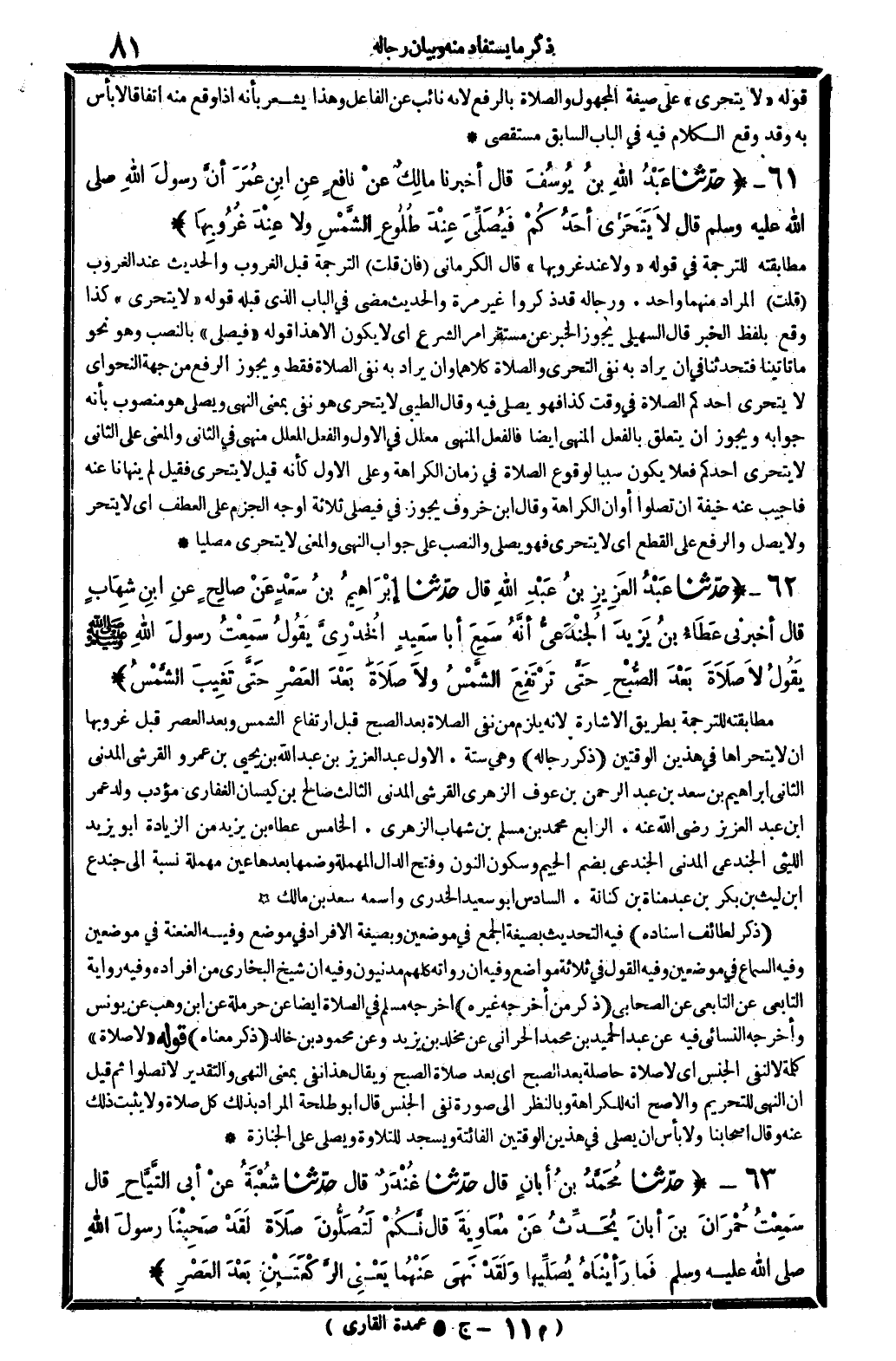 585 - حدَّثنا عَبْدُ الله بنُ يُوسُفَ قَالَ أخْبَرَنَا مالِكٌ عنْ نَافِعٍ عنِ ابنِ عُمَرَ أنَّ رسولَ الله صلى الله عَلَيْهِ وَسلم قَالَ لاَ يَتَحَرَّى أحَدُكُمْ فَيُصَلِّي عِنْدَ طُلُوعِ الشَّمْسِ وَلَا عِنْدَ غُروبِهَا.