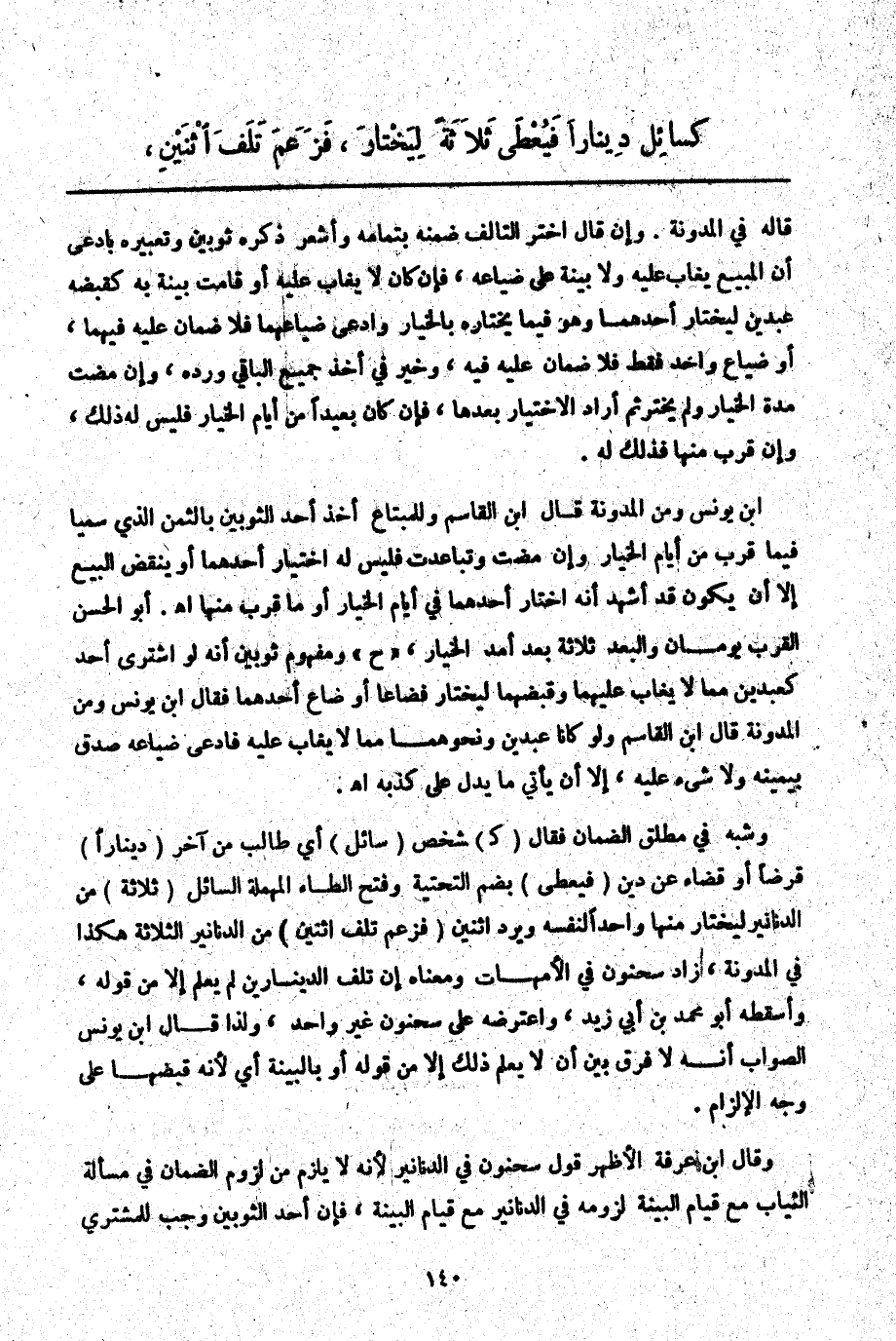 كَسَائِلٍ دِينَارًا فَيُعْطَى ثَلَاثَةً لِيَخْتَارَ، فَزَعَمَ تَلَفَ اثْنَيْنِ،.