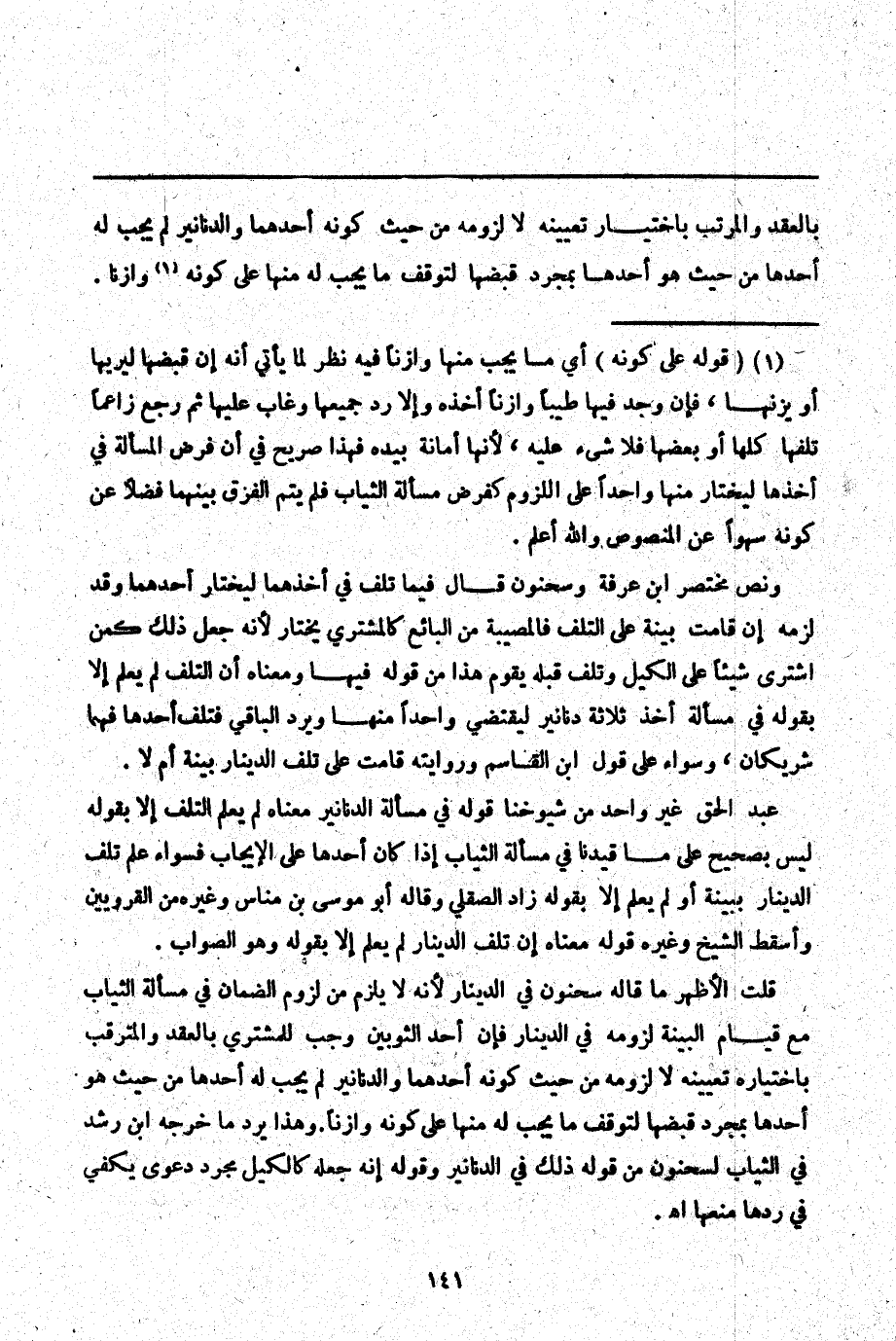 ـــــــــــــــــــــــــــــQبِالْعَقْدِ وَالْمُرَتَّبُ بِاخْتِيَارِ تَعْيِينِهِ لَا لُزُومِهِ مِنْ حَيْثُ كَوْنُهُ أَحَدَهُمَا وَالدَّنَانِيرُ لَمْ يَجِبْ لَهُ أَحَدُهَا مِنْ حَيْثُ هُوَ أَحَدُهَا بِمُجَرَّدِ قَبْضِهَا لِتَوَقُّفِ مَا يَجِبُ لَهُ مِنْهَا عَلَى كَوْنِهِ وَازِنًا.