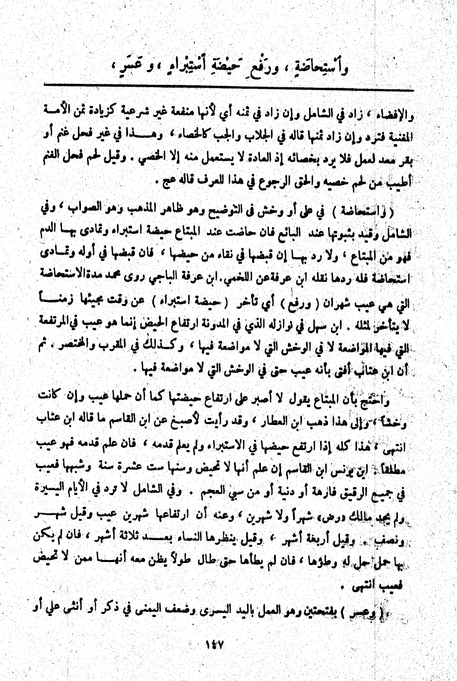 وَاسْتِحَاضَةٍ، وَرَفْعِ حَيْضَةِ اسْتِبْرَاءٍ وَعَسَرٍ،.