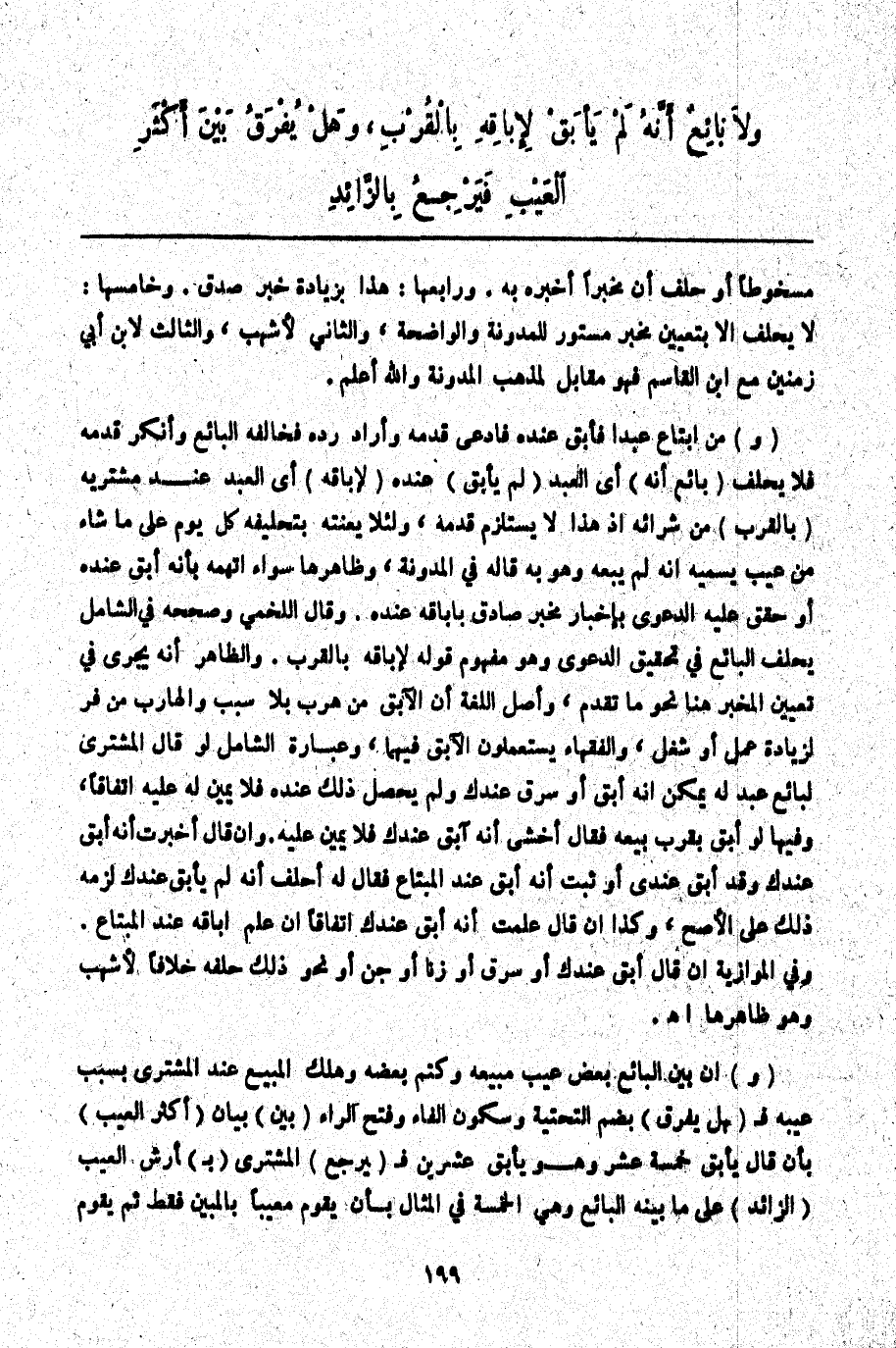 (وَ) إنْ بَيَّنَ الْبَائِعِ بَعْضَ عَيْبِ مَبِيعِهِ وَكَتَمَ بَعْضَهُ وَهَلَكَ الْمَبِيعُ عِنْدَ الْمُشْتَرِي بِسَبَبِ عَيْبِهِ فَ (هَلْ يُفْرَقُ) بِضَمِّ التَّحْتِيَّةِ وَسُكُونِ الْفَاءِ وَفَتْحِ الرَّاءِ (بَيْنَ) بَيَانِ (أَكْثَرِ الْعَيْبِ) بِأَنْ قَالَ: يَأْبَقُ خَمْسَةَ عَشَرَ وَهُوَ يَأْبَقُ عِشْرِينَ فَ (يَرْجِعُ) الْمُشْتَرِي (بِ) أَرْشِ الْعَيْبِ (الزَّائِدِ) عَلَى مَا بَيَّنَهُ الْبَائِعُ وَهِيَ الْخَمْسَةُ فِي الْمِثَالِ بِأَنْ يُقَوِّمَ مَعِيبًا بِالْمُبَيَّنِ فَقَطْ ثُمَّ يُقَوِّمُ